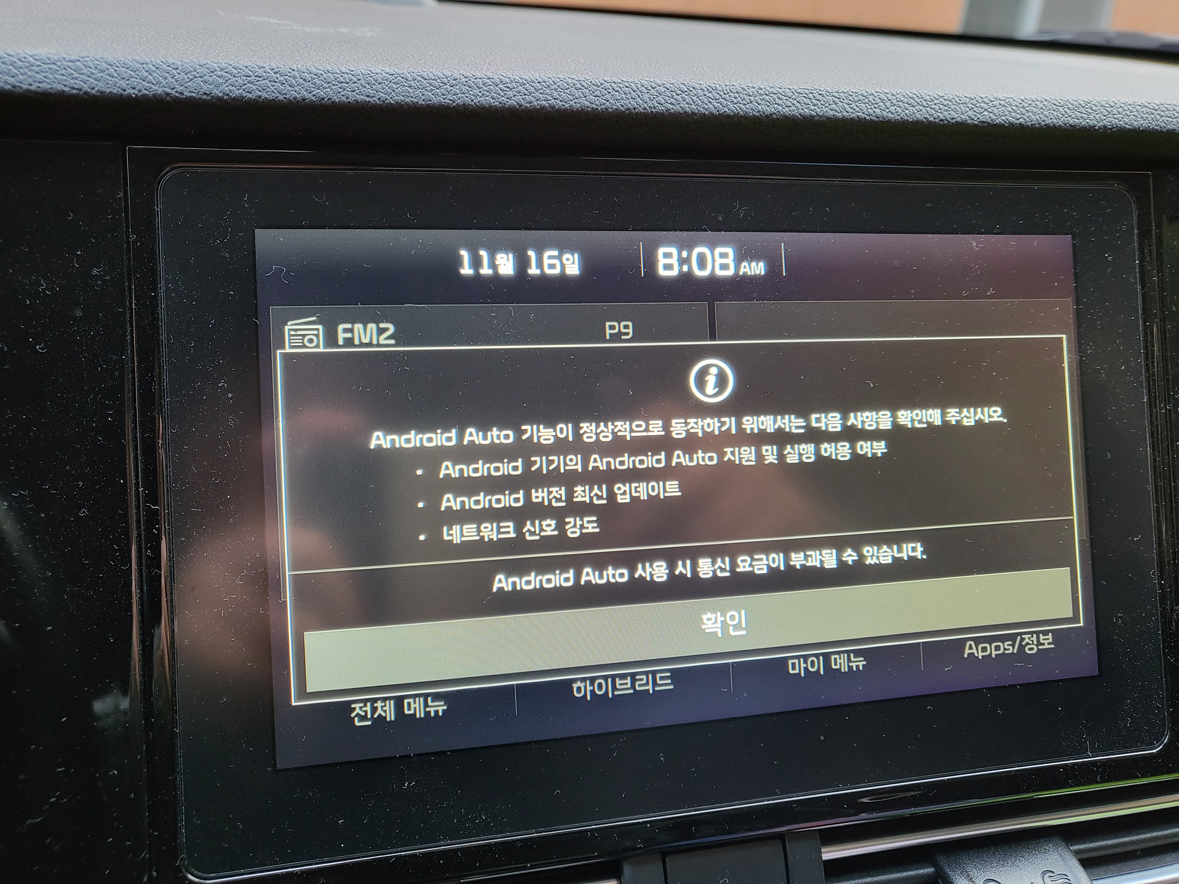 연결이 되면 자동차화면에서 확인하도록 한다. 개인적으로 애플 카플레이보다 디스플레이가 예쁘지 않다. 자동차화면으로 볼 때 지금은 스마트폰 시대인데 예전 MP3 사용하는 느낌이 든다. (물론 그것보단 좋지만 비유하자면) 굴에서 정체되면 연결이 끊어질 때가 있다. 한달에 한 번정도는 장거리 운전하는데 미리 걱정된다.