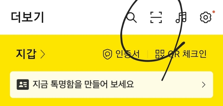 카카오톡을 켜고 동그라미 친 부분을 눌른 후 QR코드를 찍으면