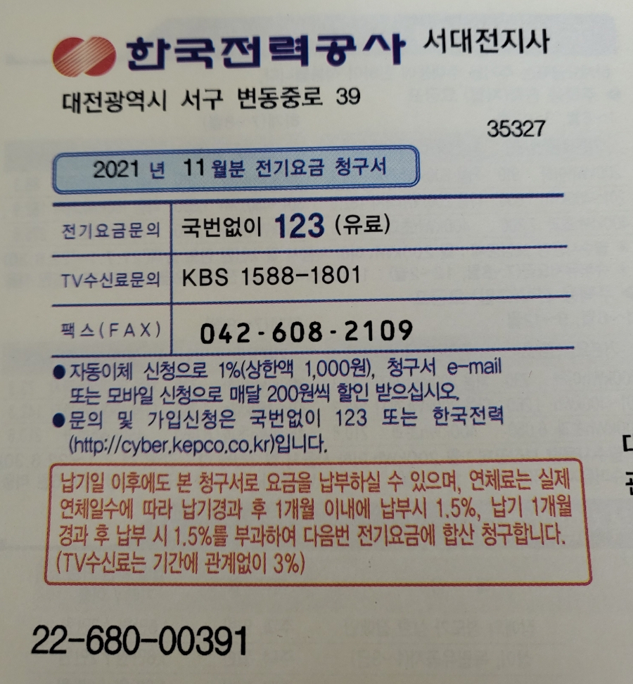 한전 전기요금 고지서가 왔다.