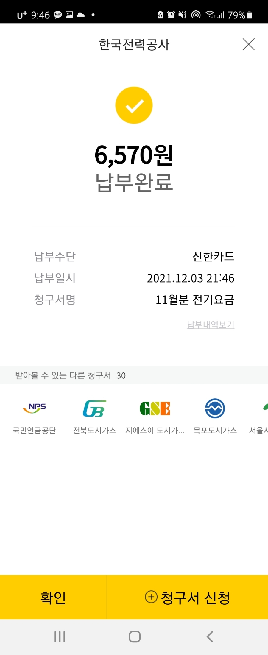 납부할 전기요금이 뜬다.