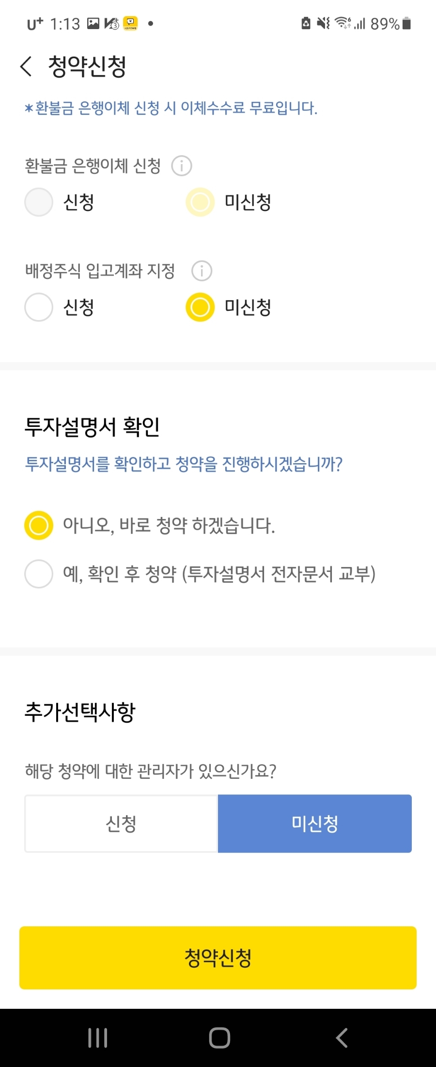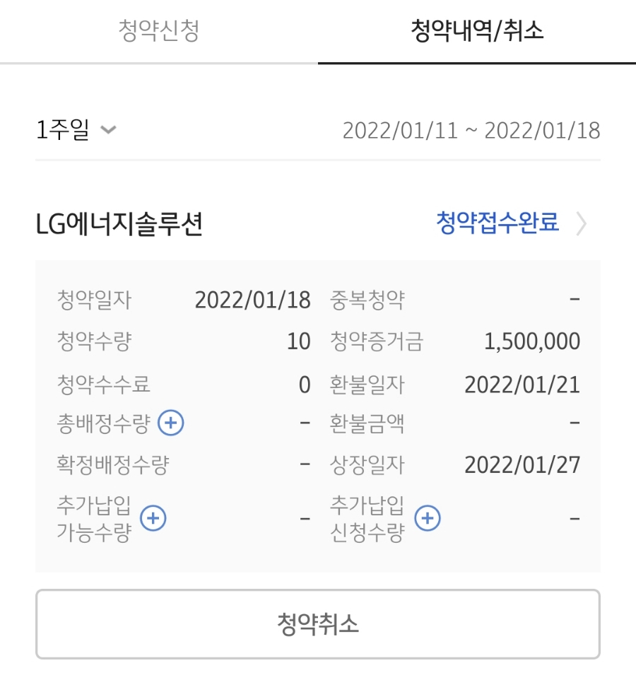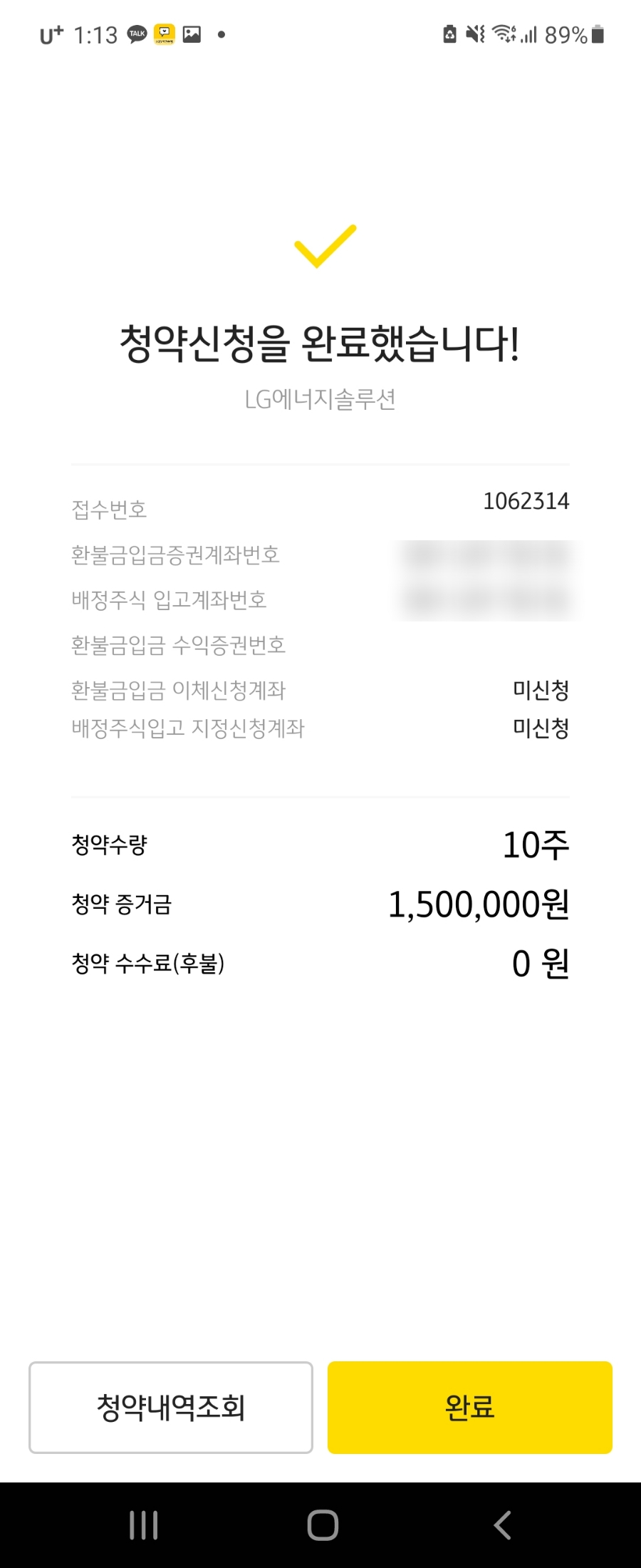 청약 신청이 완료되었다.