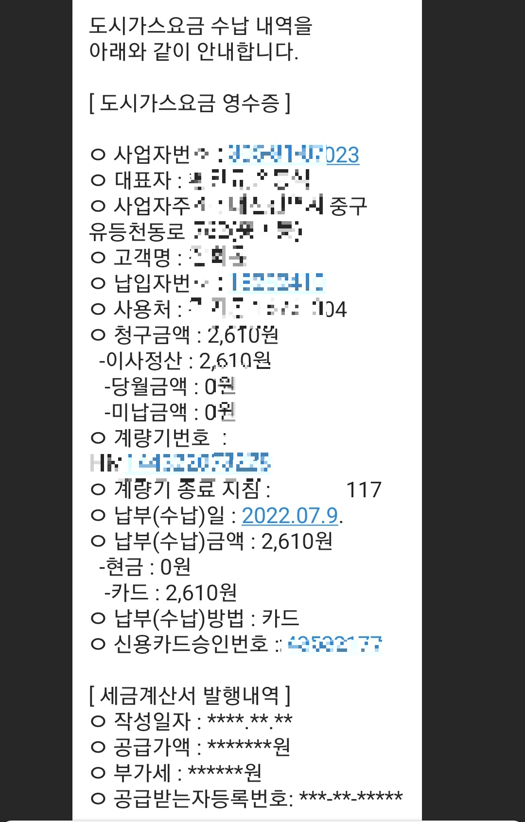 기사님이 약속된 시간에 방문해주시고 건물 외벽에 있는 가스계량기를 확인하고 조치를 취하고 올라오셔서 바로 카드로 정산가능하다. 미리 카드로 결제한다고 말해놓으면 편하고, 삼성페이로 결제 가능하다.