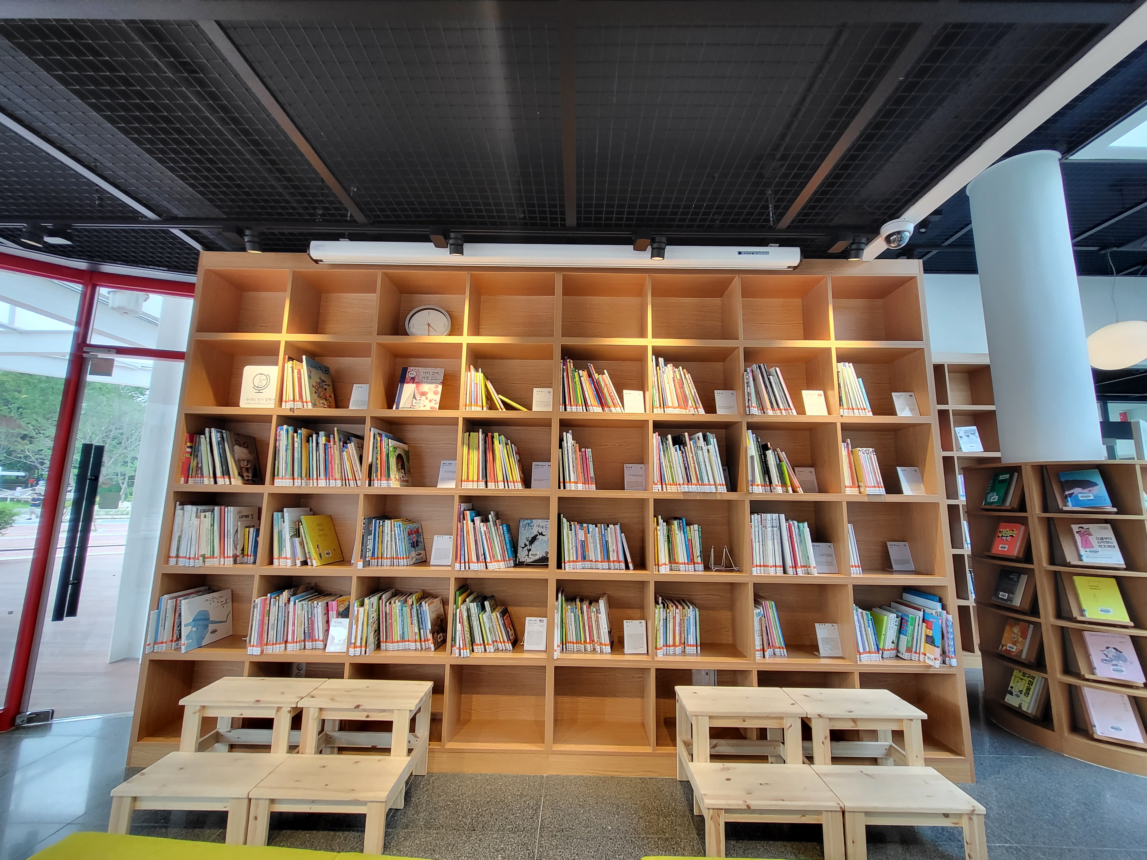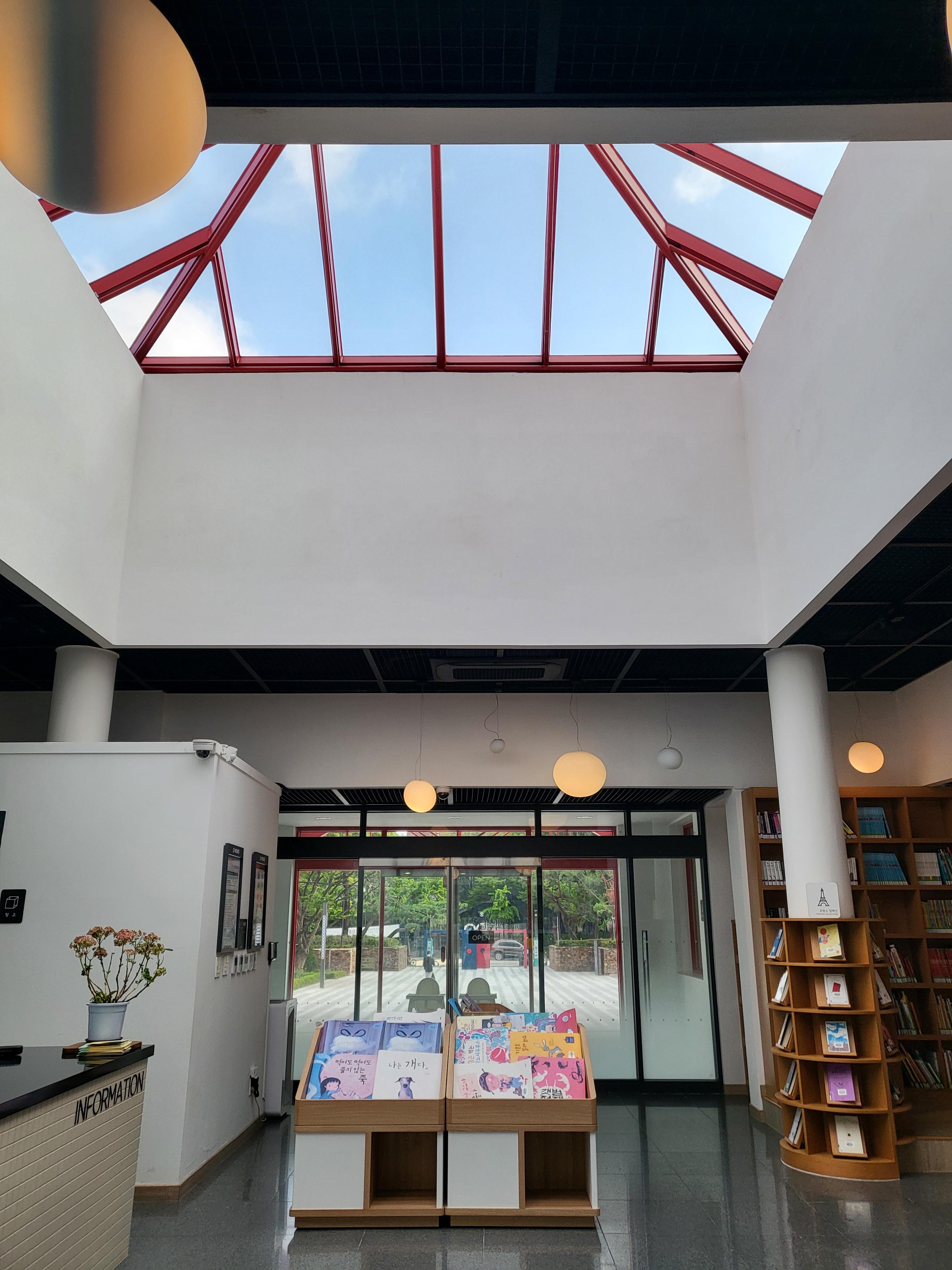 천장이 유리로 되어있어서 환하다. 작은 어린이 도서관(?)이 있는 쉼터정도로 생각하면 된다.