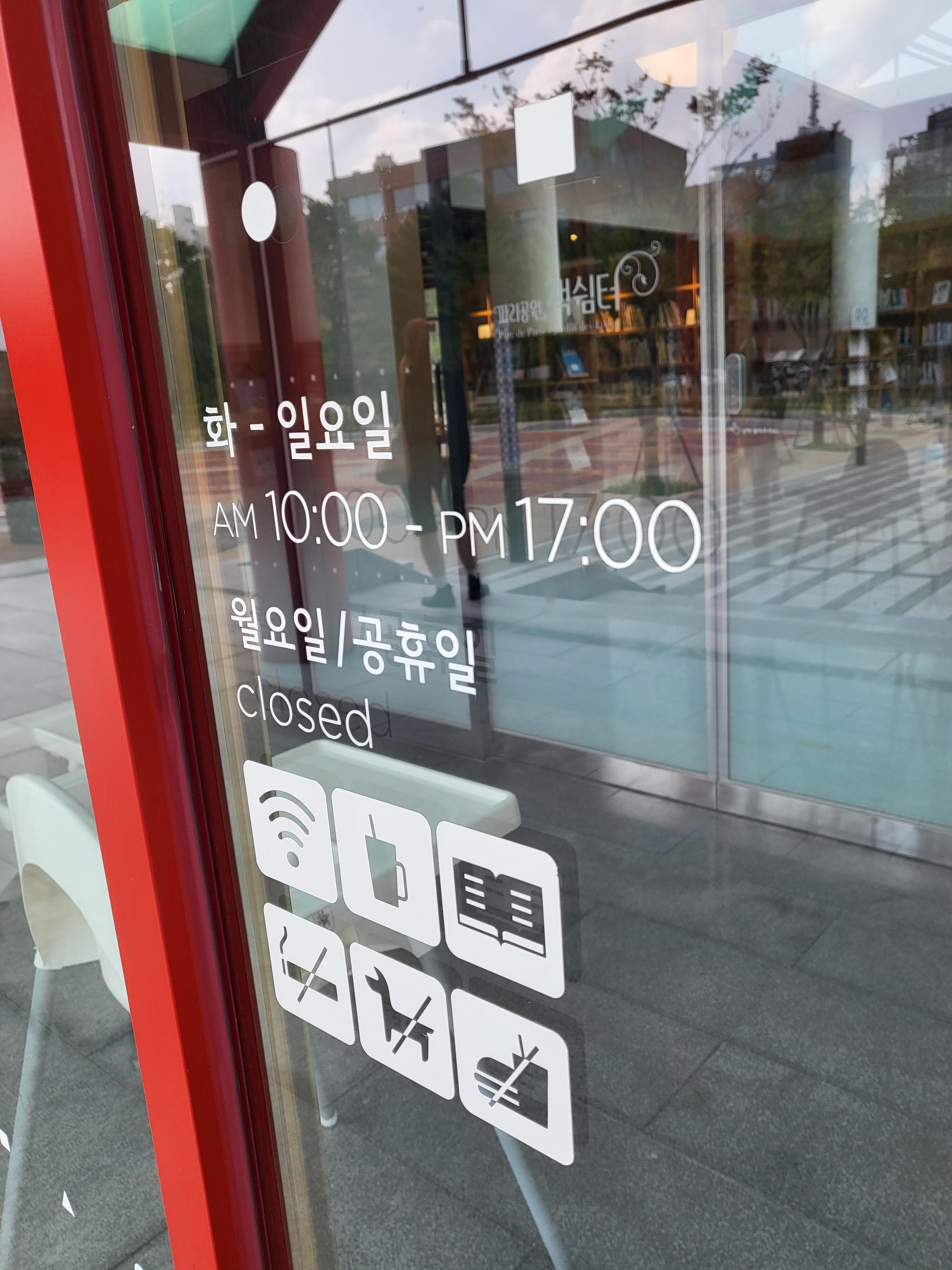 와이파이 잘 터지고 음식은 안되지만 음료는 마실 수 있으며 책 읽는 공간이고 화장실도 깔끔하다. 반려동물은 동반 불가