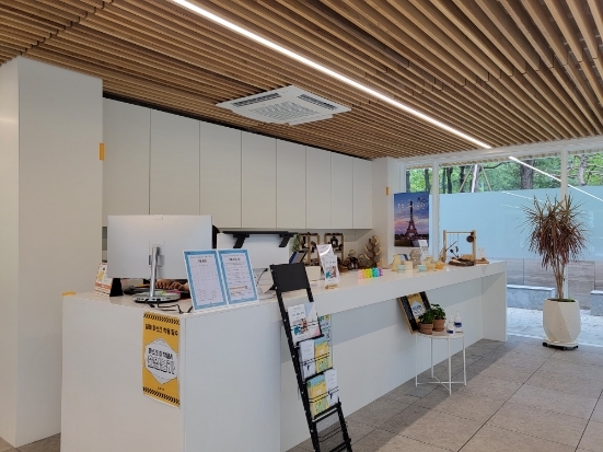 잠시 쉬어가기도 하고, 일정에 따라 교육이 이뤄지기도 하는 장소! 통창으로 파리공원이 보이는데 정말 쾌적하고 예쁜 공간이다.