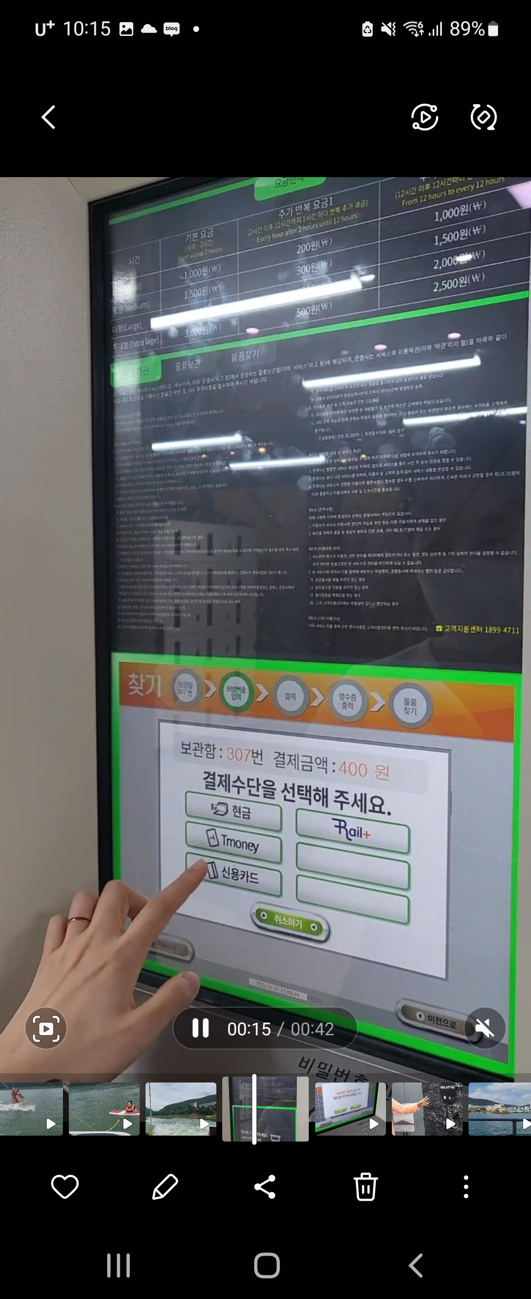 - 결제가 완료되면 보관함이 열린다. 이때, 미리 넣어놓을 짐을 추려 놓아야한다. 계속 열었다 닫았다 할 수 없기 때문