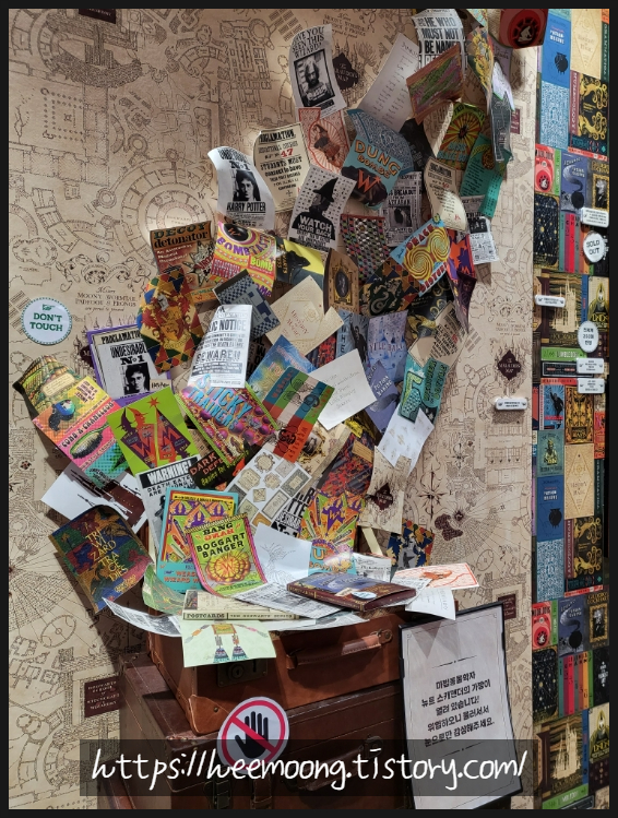 - 마법동물학자 뉴트 스캐맨더의 가방이 열려있으니 물러서서 눈으로만 감상해달라는 주의 문구가 보이네요. 손으로 만지지 지 않고 눈으로 보는 작품입니다.