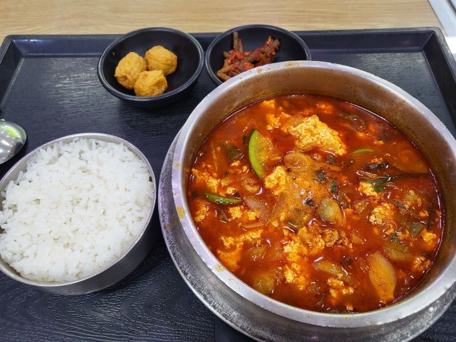 저녁 7시가 넘어 배는 고프지 않았지만 때 되었을 때 안먹으면 자기 전에 애매해지기 때문에 적당히 속 안 부대끼는 걸로 골랐다. 몽글 순두부찌개 8500원 가격 대비 비쥬얼이 환상이어서 선택하지 않을 수 없었다.