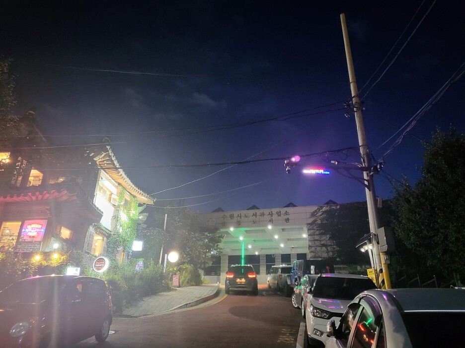 2022.9.3. 저녁 6시 수원에서 서서울 방향으로 운전해 가는데 길이 너무 밀려서 수원화성에서 쉬었다 가기로 했다. 공영주차장은 돌길이고 자리가 거의 없긴한데, 진짜 저렴하다. 2-3시간 정도 세워