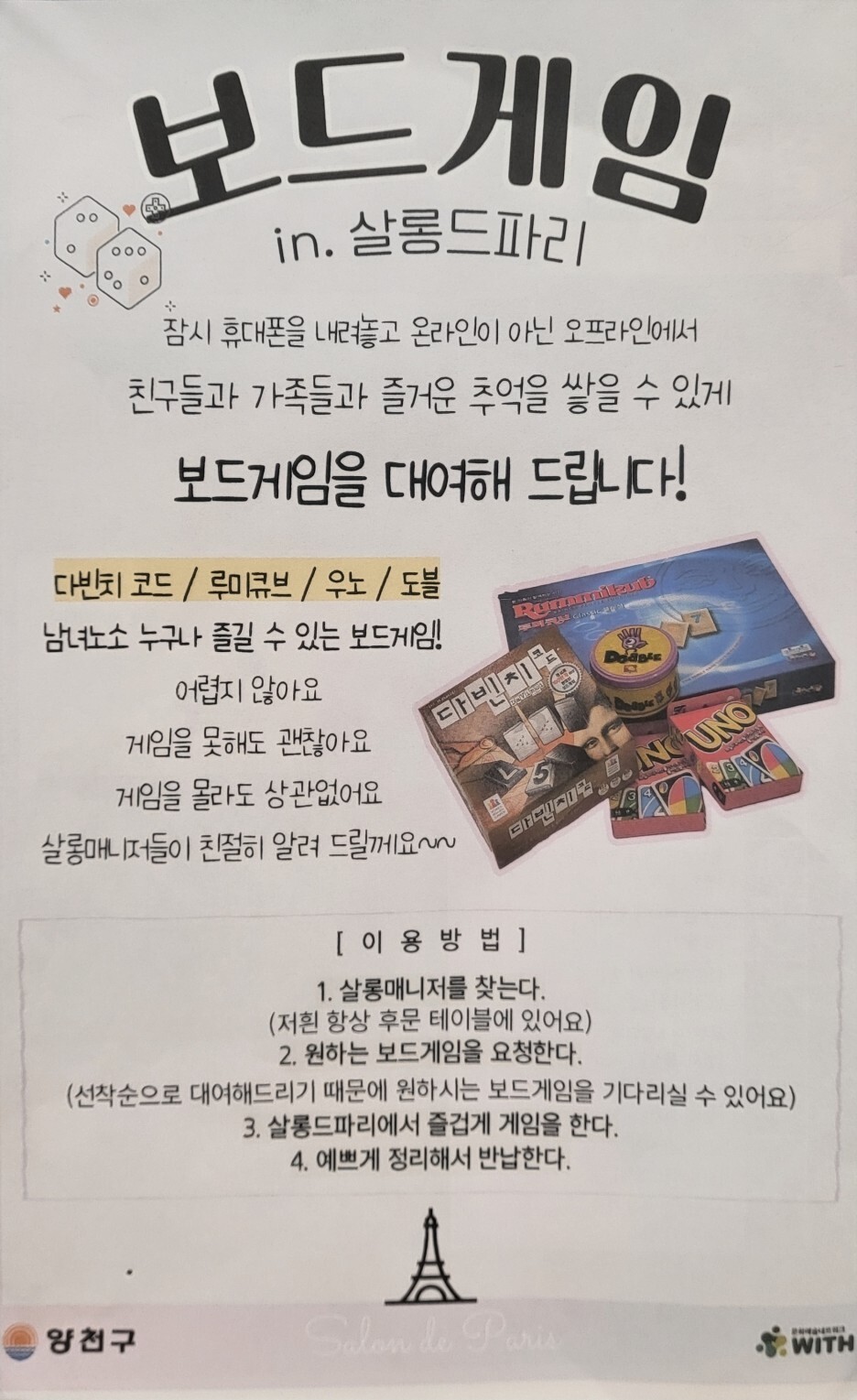 살롱매니저에게 요청하여 보드게임도 가능하다.