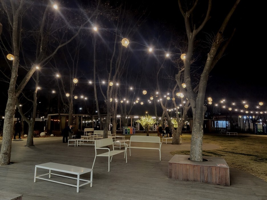 은은한 불빛이 파리공원과 잘 어우러진다.