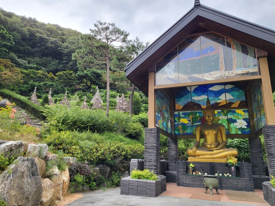 입구에서 볼 수 있는 황금색 대형불두상이 랜드마크가 되었다. 높이 8m의 거대한 불두(佛頭)가 있는데 불신(佛身)이 완성되면 100m가 넘는다고 한다.