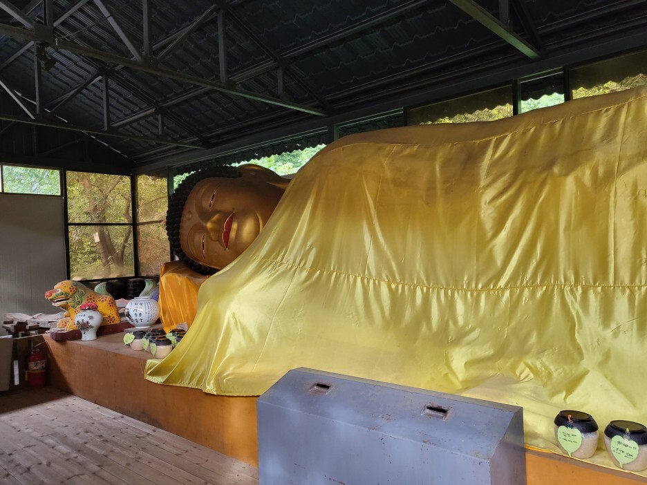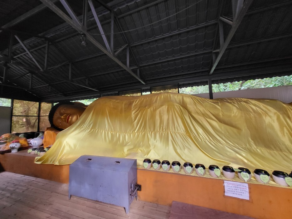 열반전 신축공사로 인해 누워계신 부처님은 현재 불두상 뒤편에 임시법당에 계신다.