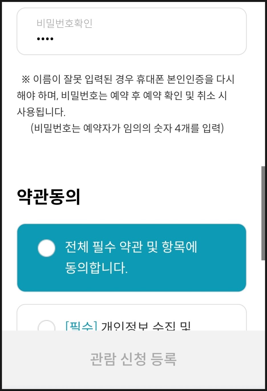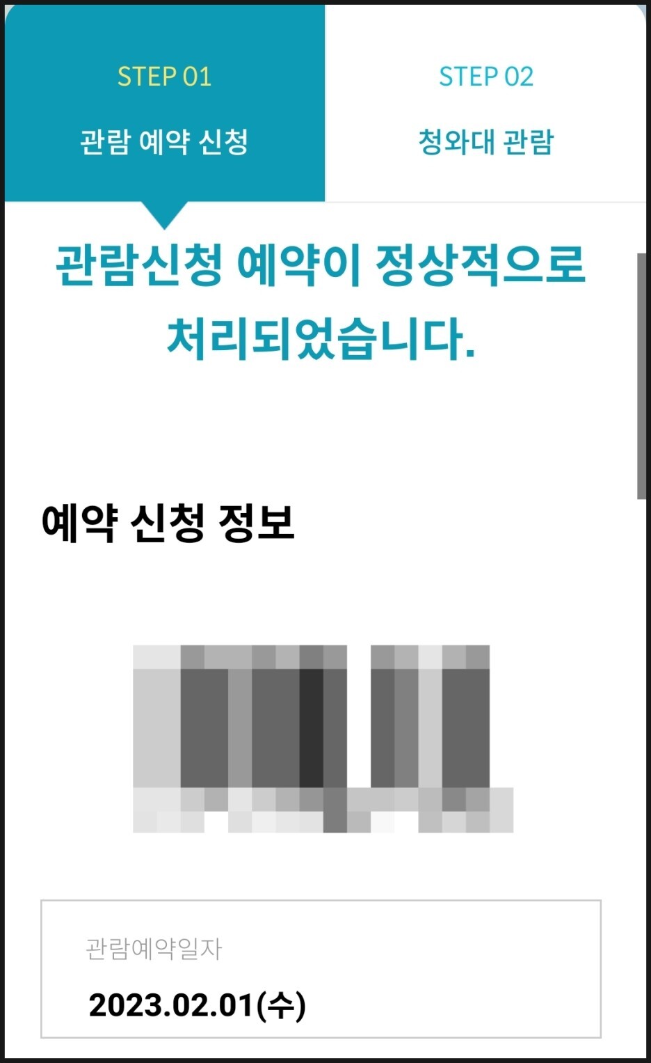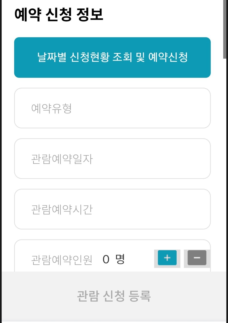 - 청와대 관람 예약하러가기-예약하기-예약신청정보 작성