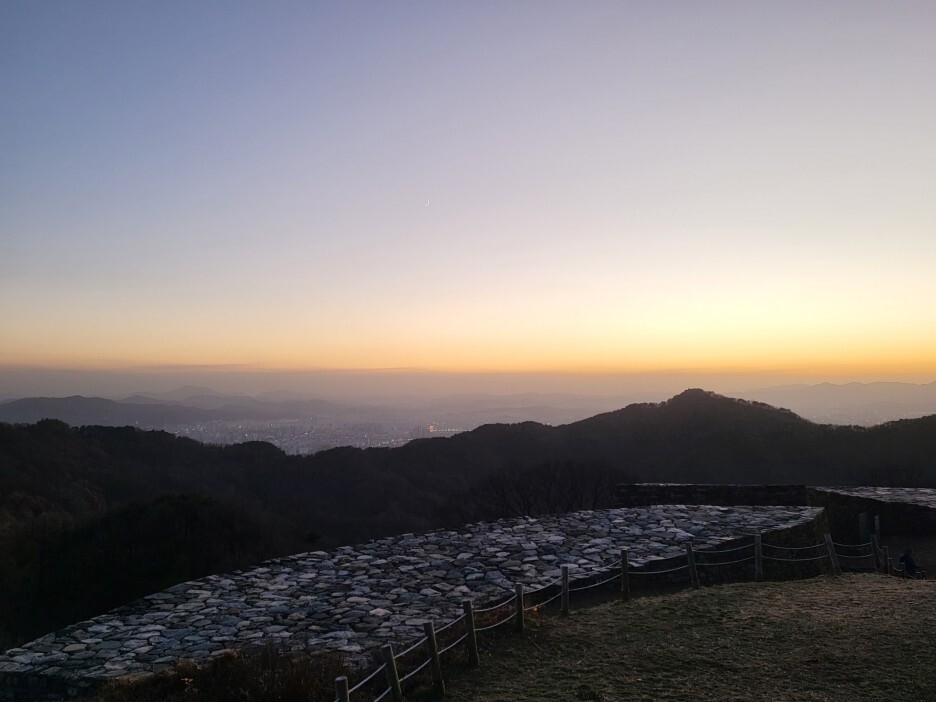 석양을 바라보았다. 6시가 가까워진 시간, 마지막 등산객 분이 하산하셨고 불안한 마음을 뒤로한 채 석양을 배경으로 열심히 사진을 찍었다.