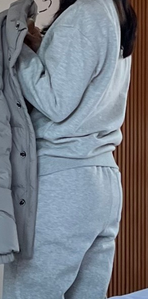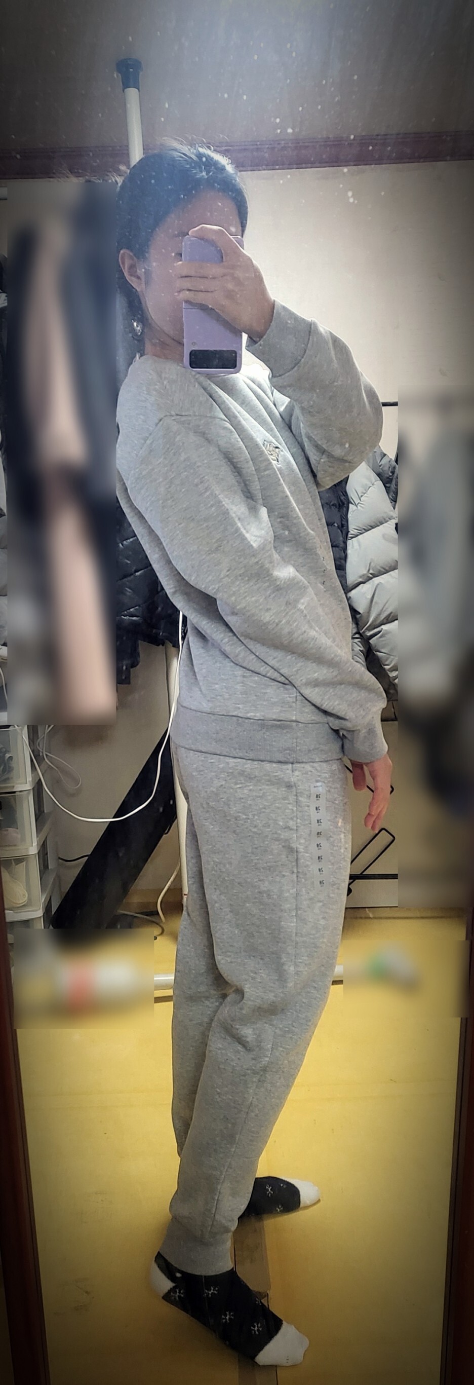 - 맨투맨이 위아래 길이가 엄청 긴 편은 아니라, 허리가 긴 글쓴이는 엉덩이 위로 자꾸 올라가는 느낌이 들어서 맨투맨을 계속 내려줬음