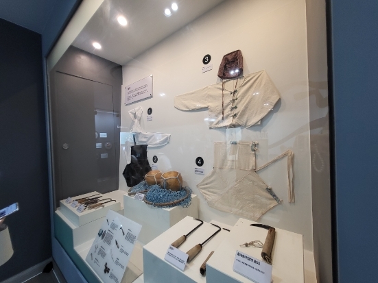 2층에는 해녀가 물질을 하면서 쓰는 도구와 작업복이 전시되어 있고,