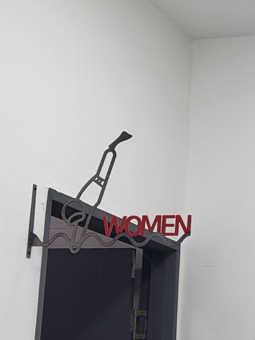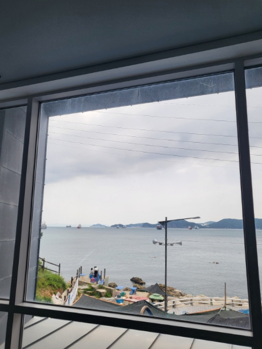 2층에 화장실이 있는데, 해녀가 바다로 들어가는 모습이 독특했다. 2층의 바다뷰도 꽤나 멋지다.