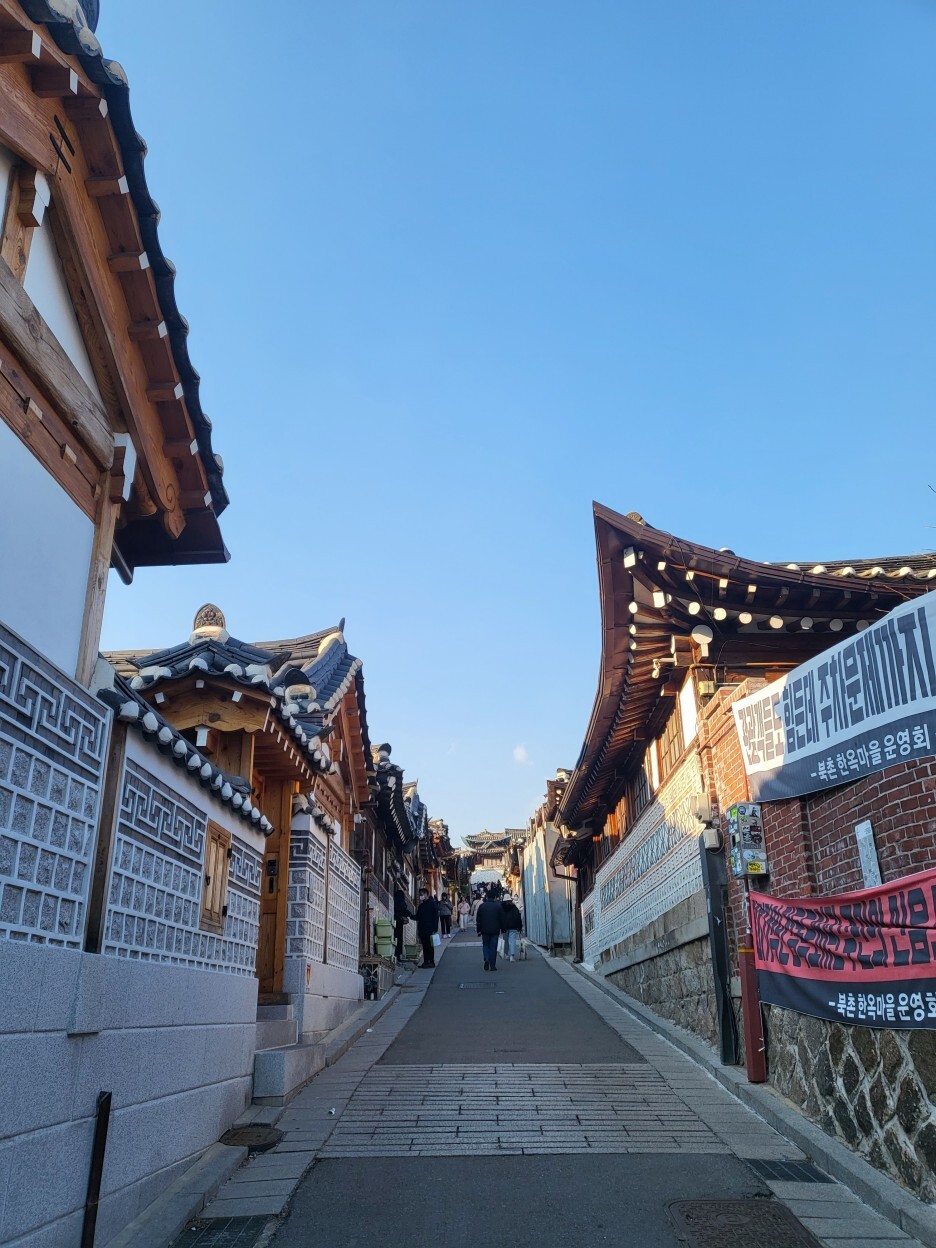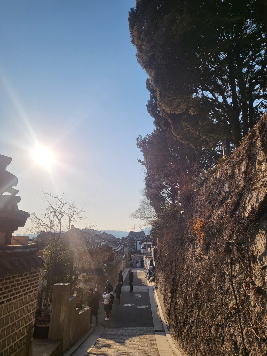 2월 초 주말 겨울 북촌한옥마을의 풍경, 예전만큼은 아니지만 외국인 관광객도 꽤 많이 보였다.