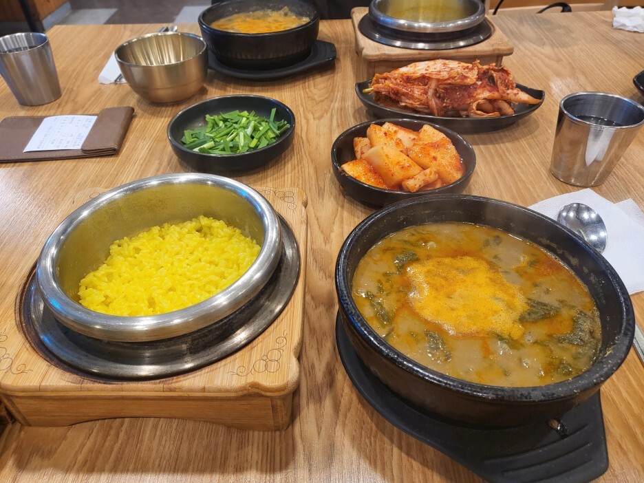 부추, 겉절이, 무김치 모두 맛있어서 오면 다 먹고 가는 듯하다. 예담추어정이 좋은 것은 솥밥을 주는데, 무려 강황밥이다.