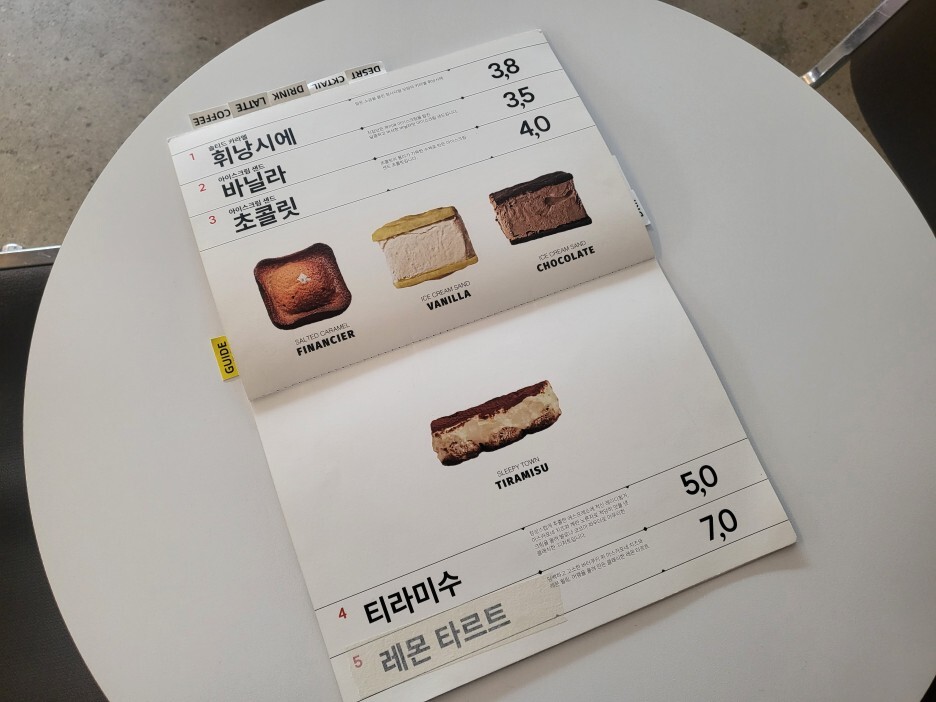 - 아이스크림 샌드는 음료가 나왔을 때 아이스박스에서 직접 꺼내가기 (옆에 접시 있음!)