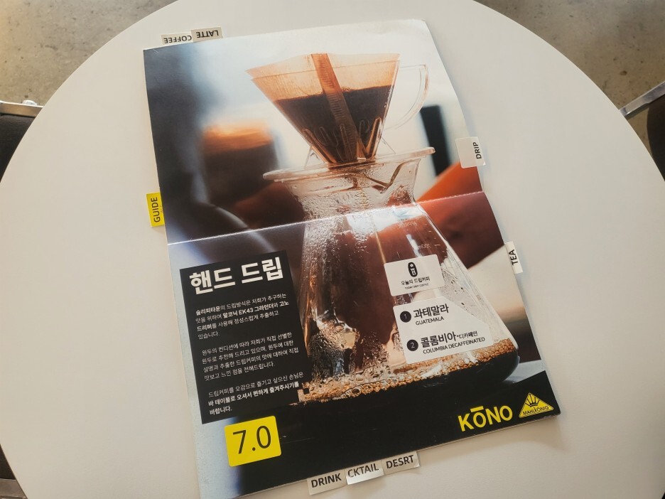 - 원하는 곳에 자리를 잡고 메뉴판을 본 후, 카운터 왼쪽에서 선결제