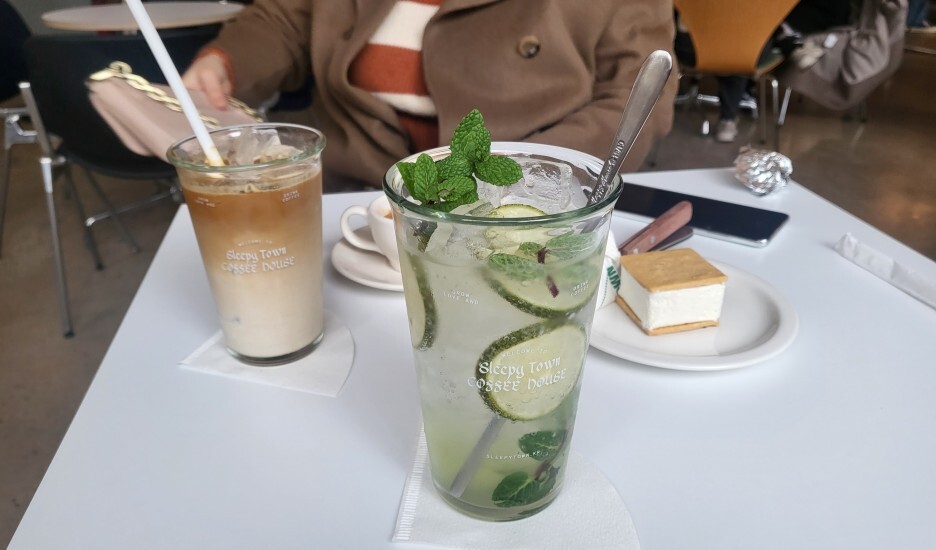 요즘 소화가 잘 안 되서, 커피 대신 소화를 위해(?) 라임 모히또 에이드를 주문했다! 슬리피타운은 음료도 하나하나 잘 한다. 뭔가 과하지 않으면서 고급스럽게 맛을 낸달까! 너무 달지도, 너무 톡 쏘지도 않으면서 소화까지(?) 잘 됨...