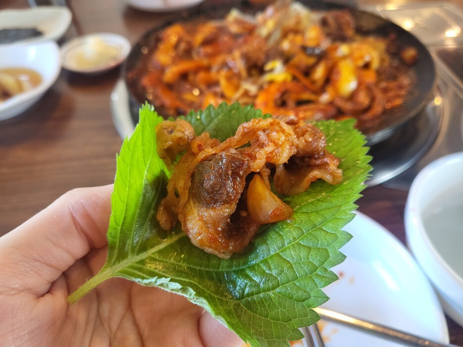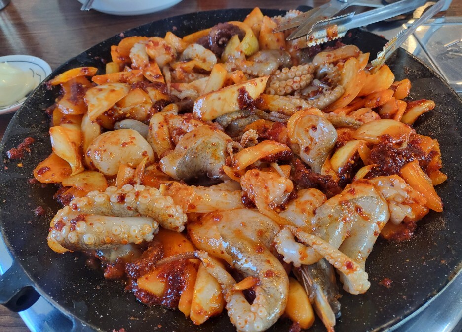 그래서 이렇게 쌈을 싸먹으면 밸런스가 딱 맞다. 쭈꾸미 요리는 마요네즈를 넣어먹으면 고소하니 맛있다.
