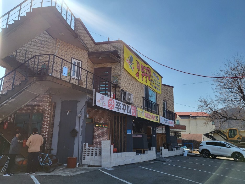 청평역에서 걸어서 20분 자시오잣쭈꾸미에 도착했다. 23년 2월 말 영상으로 올라온 날씨와 기분좋은 햇빛에도 조종천은 군데군데 얼어있었고 빙어낚시를 하시는 분도 보였다.
