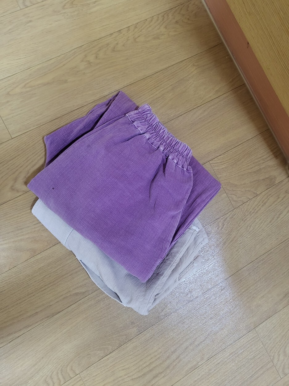 침구류와 템플스테이 복장, 바닥이 딱딱해서 이불을 2개 깔고 잤다.