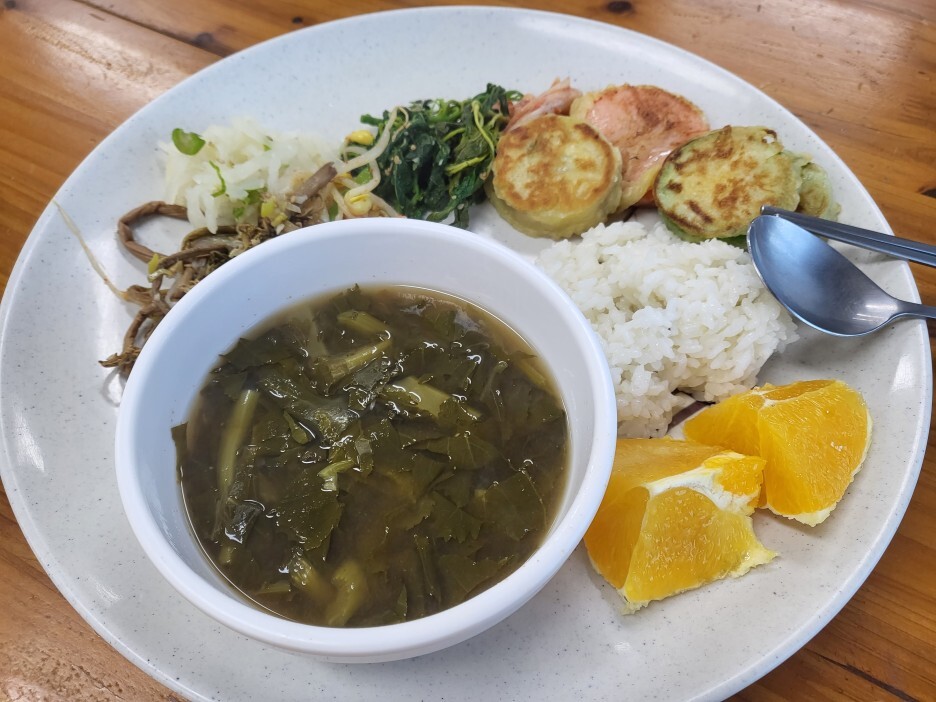 절이기에 채식으로 준비되는 식사, 살짝 간간하지만 하나하나 맛있고 정성스러웠던 공양시간! 오후 5시에 시작하며 다 먹은 그릇은 설거지하고 나가면 된다.