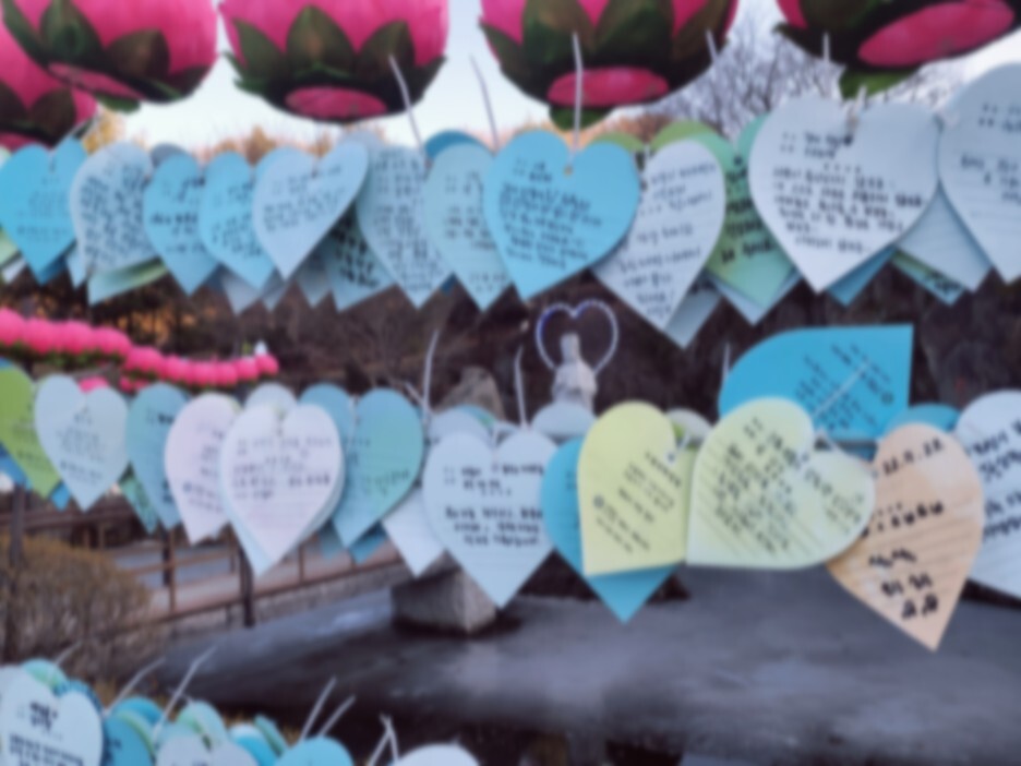 하트에 자신의 소원을 적어본다. 이루어지길 간절히 기도하며!