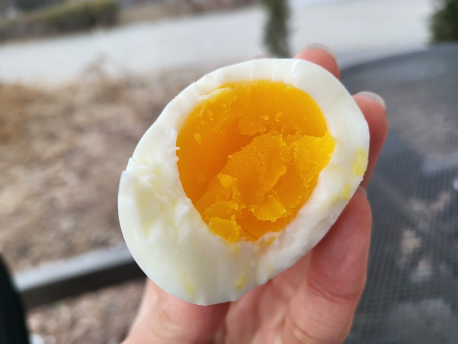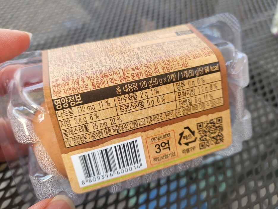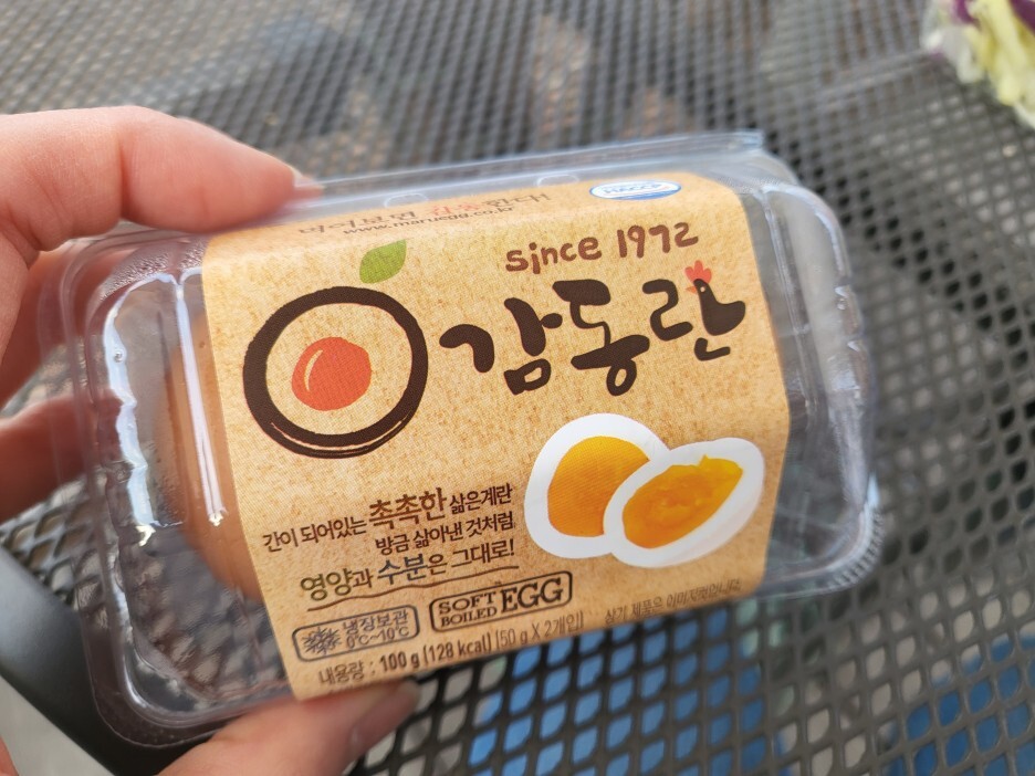 한 곽에 2개 들어있는데 1900원 비싸긴 하다. 간도 되어 있고 반숙란이라 촉촉해서 목도 안 막히겠다! 난 완숙보다 반숙을 더 좋아함.