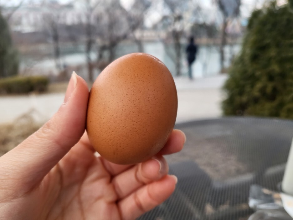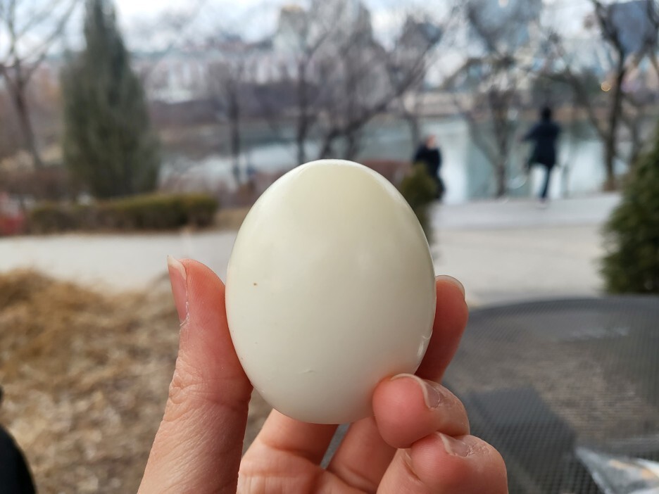 탁 하고 깨면 꽤 예쁜 모양으로 까진다. 그리고 생각보다 많이 짭쪼름하다.