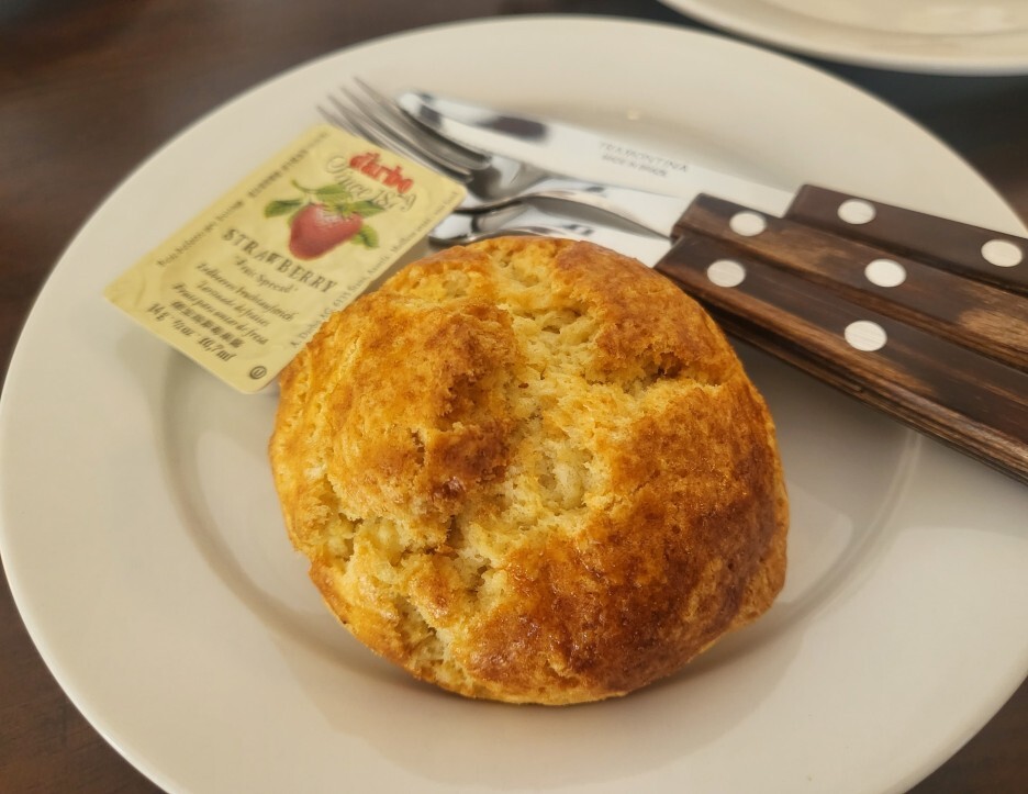 3명이서 먹을 것이기 때문에 스콘을 2개 주문했다. darbo 딸기잼과 함께 주심. 보통 지금까지 먹었던 스콘보다 덜 바스라졌지만, 먹다보면 가루만 남기때문에 손으로 적당히 집어먹는 것이 좋다.