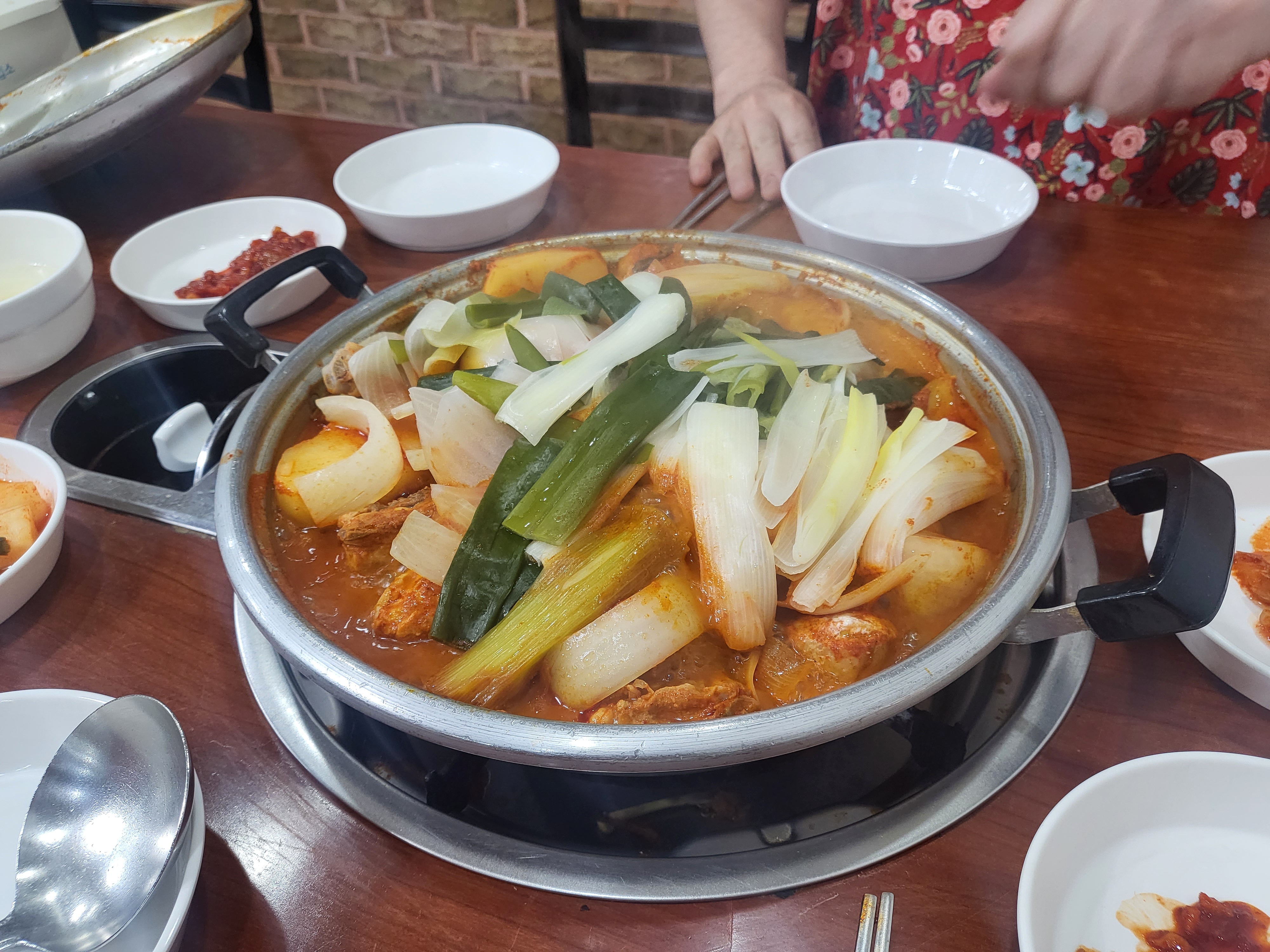 저녁 7시 정도의 늦은 시간에도 2층까지 만석이라 꽤 웨이팅을 했다. 닭볶음탕 대자가 45000원, 소자가 31000원! 예전엔 좀 더 저렴하고 중자도 있었다고 한다. 또, 식당이 잘 되면서 리모델링했다고 한다. 참고!