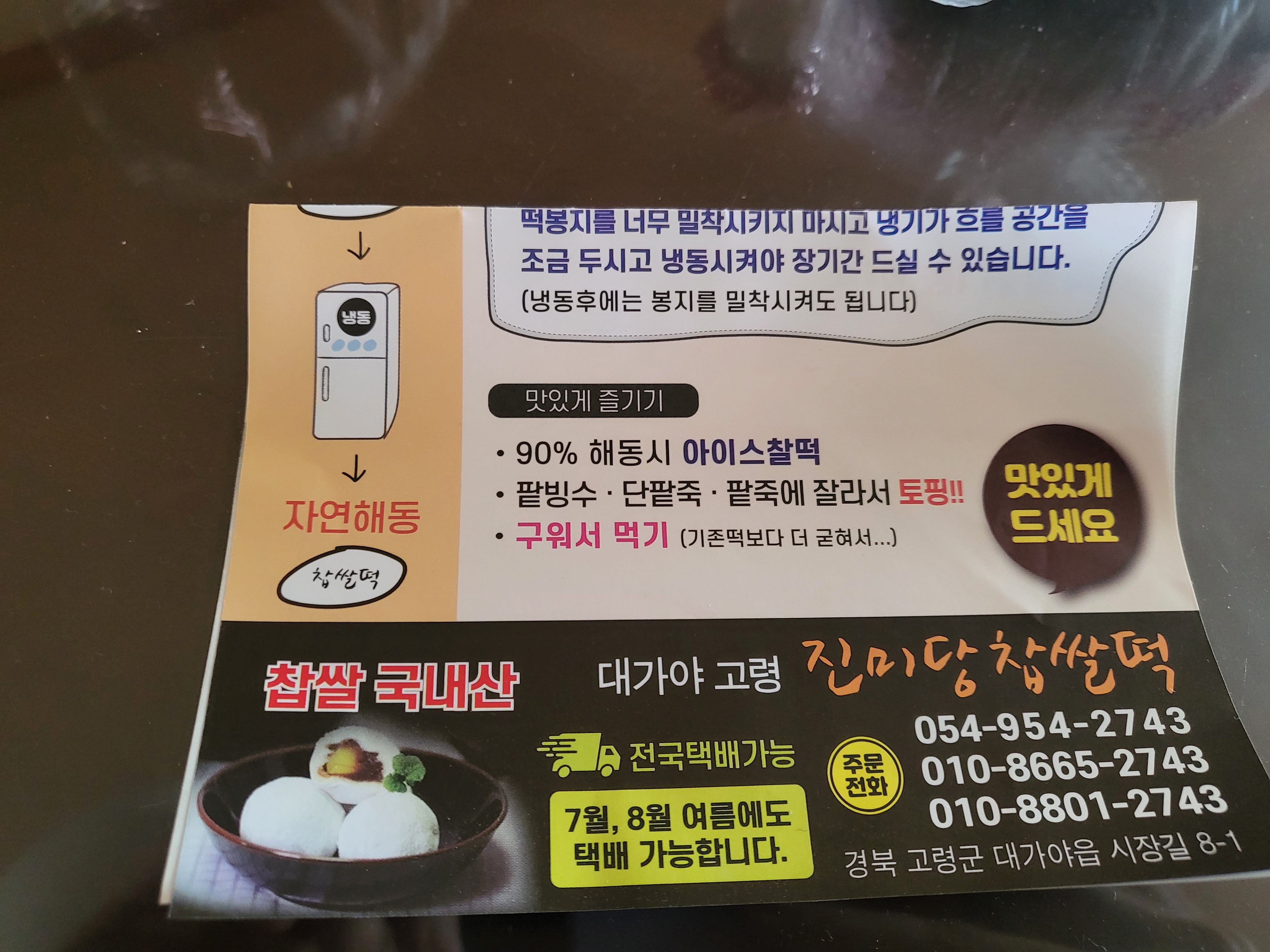 이렇게 찹쌀떡 1봉지에 7개가 들어있고 가격은 8,000원이다.