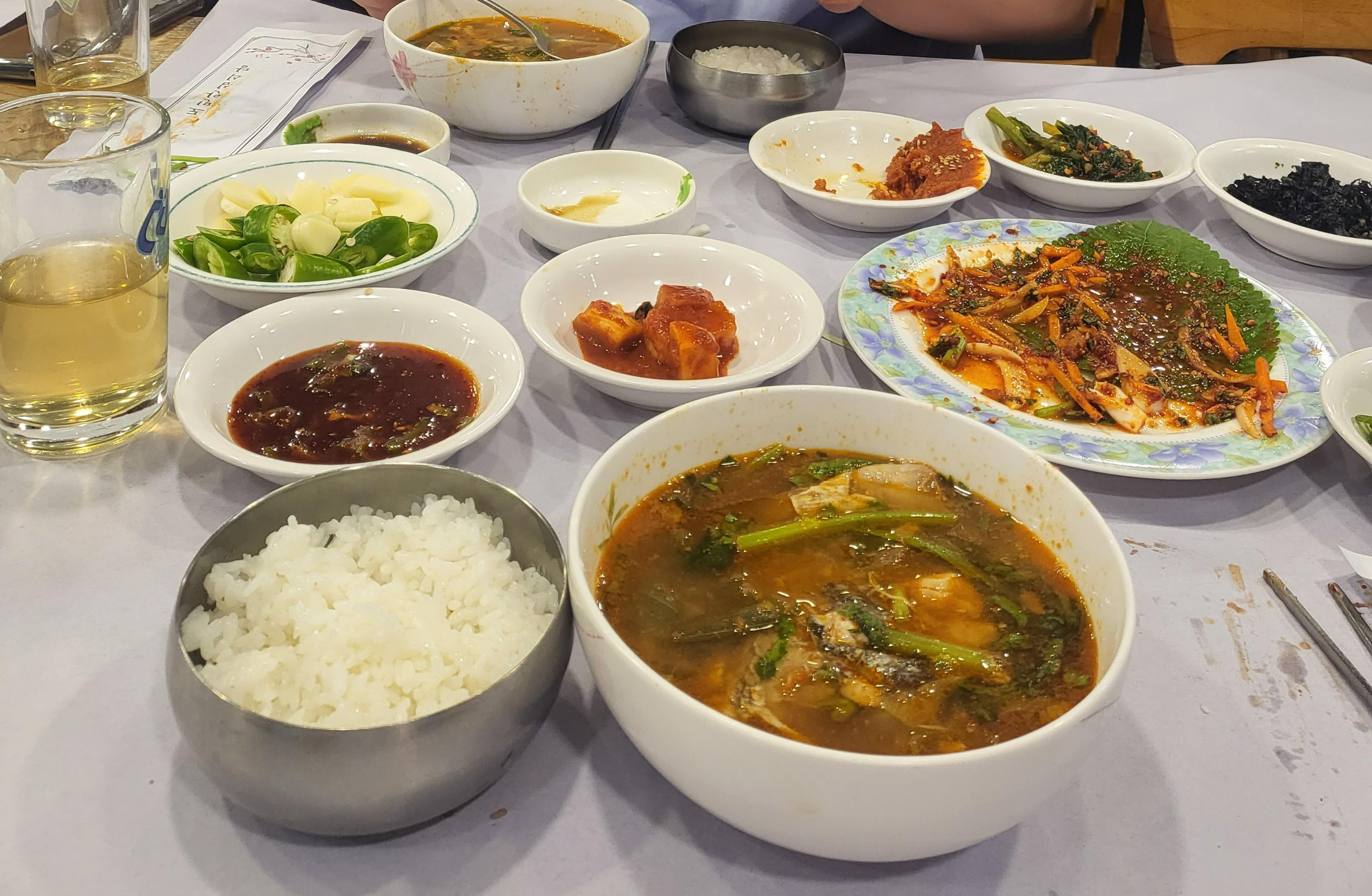 영란회집의 하이라이트 매운탕이 나올 땐, 밑반찬이 조금 바뀐다. 민어가 기름기가 꽤 있는 생선이라 국물도 깊고 고소하다.