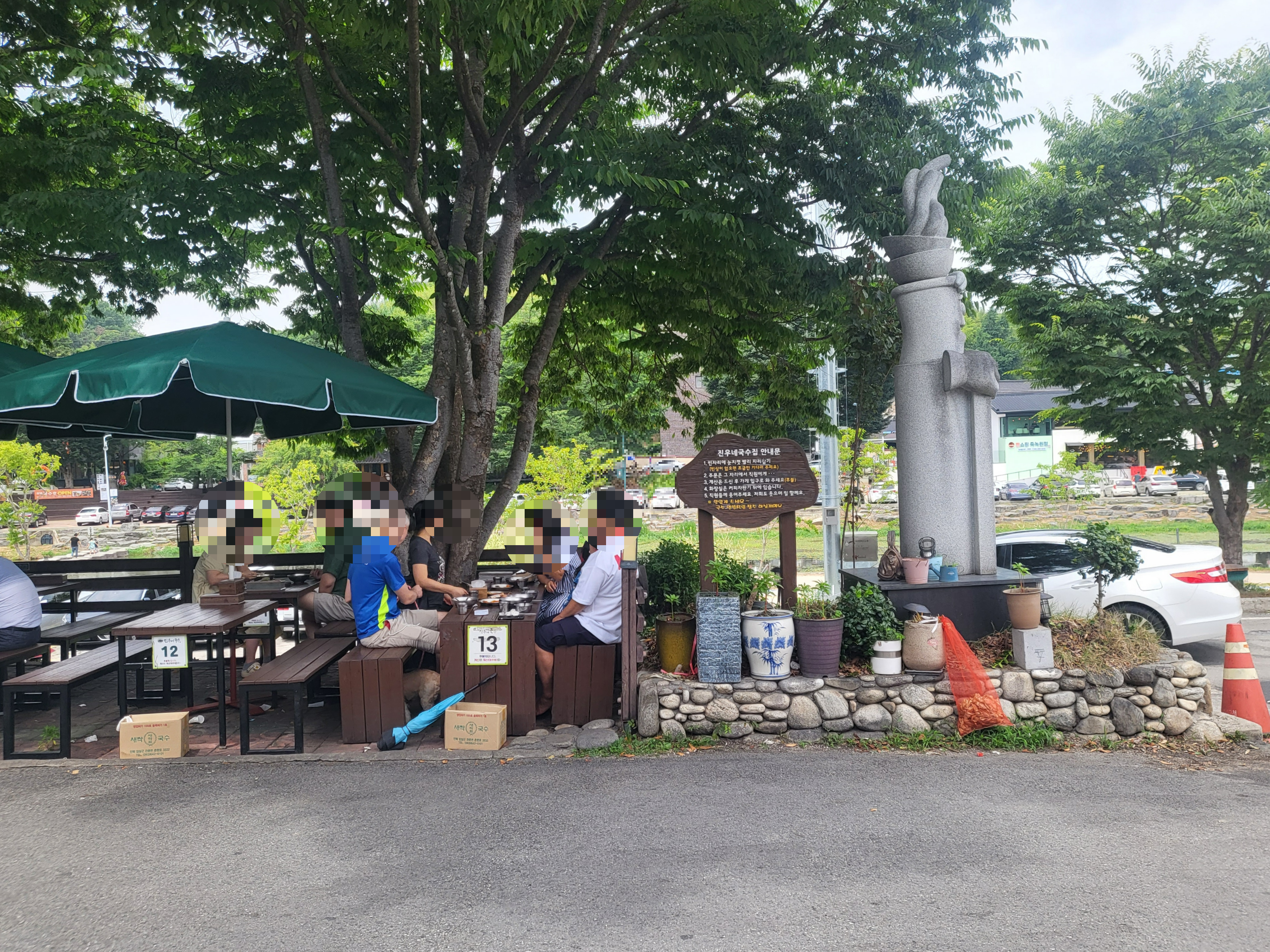 담양관방제림 맞은 편 영산강을 따라 국수거리가 쫙 펼쳐지는데, 그 중 진우네국수집을 찾았다. 가격도 좋고, 맛도 괜찮은 곳이다. 멸치국물국수(5,000원) 1그릇과 국내산 돼지고기 육전(8,000원) 한 접시를 시켜 둘이 나눠먹었다. 만석이지만 회전율이 높아 금방금방 치워지고 또 새로운 손님을 받을 수 있는 곳.