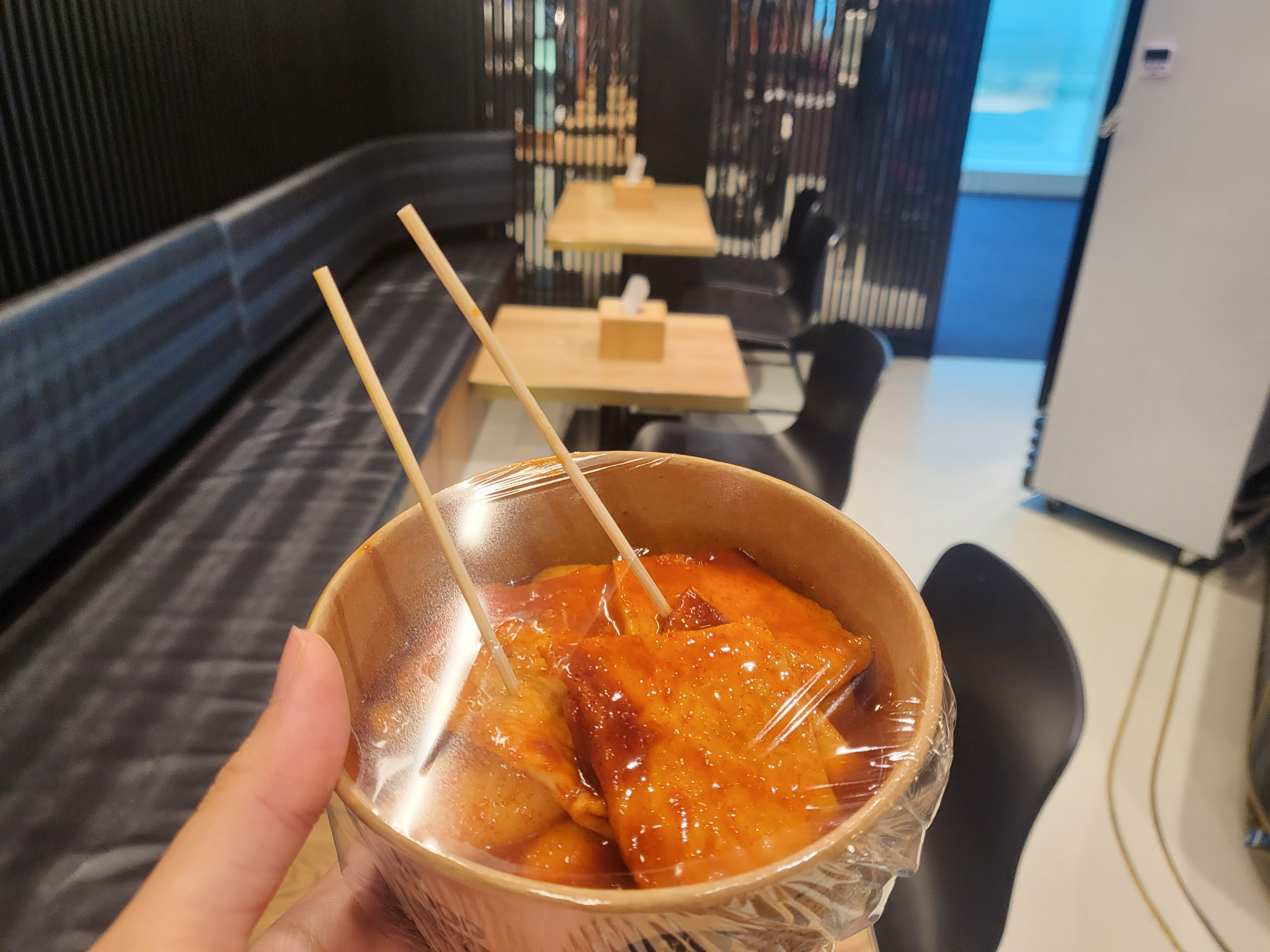 - 규모가 크진않지만 취식 가능한 공간이 있음. 떡볶이는 6000원. 진에어는 물도 조금씩 준대서 물 500미리도 미리 구매함(1천 원)