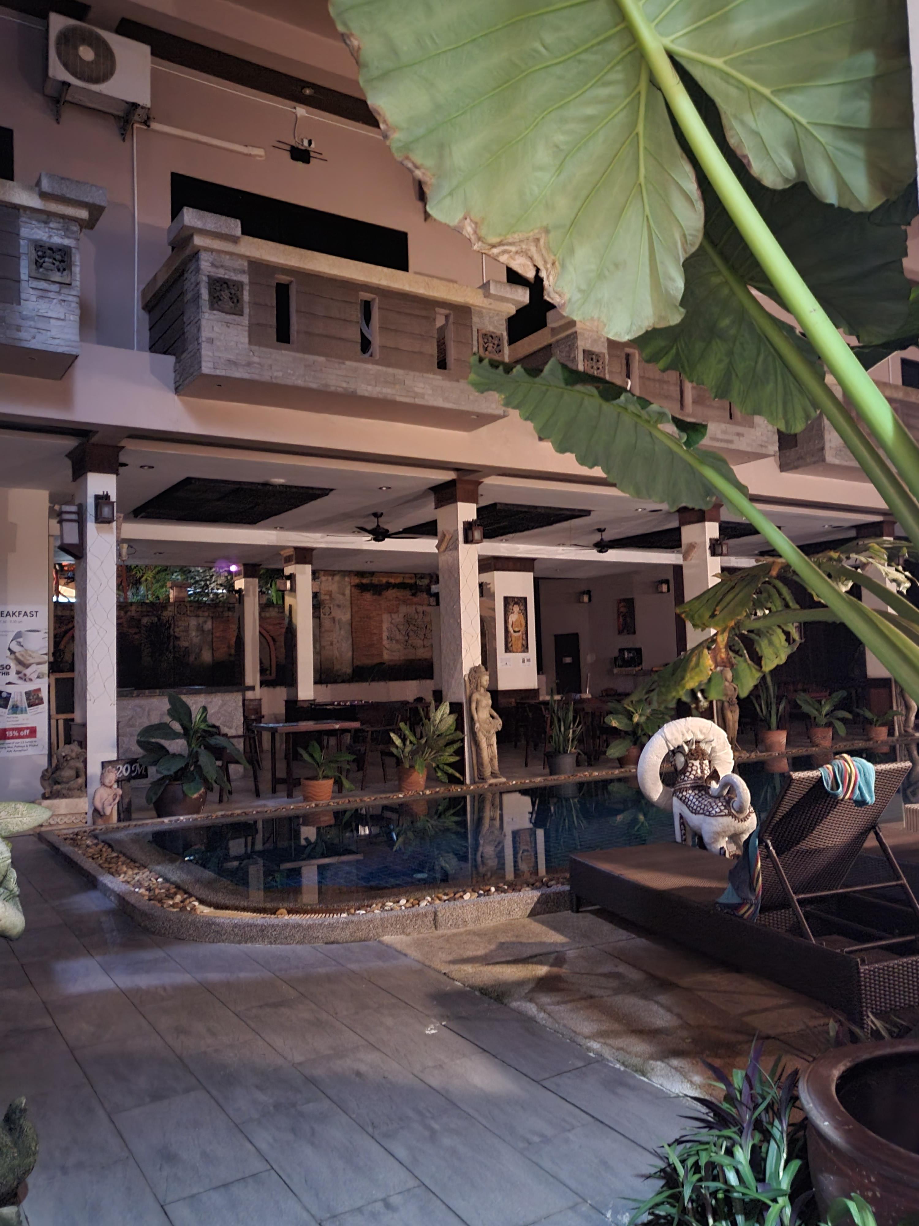 - 프런트 옆으로 수영장이 있고, 조식을 먹는 곳이 보인다.
