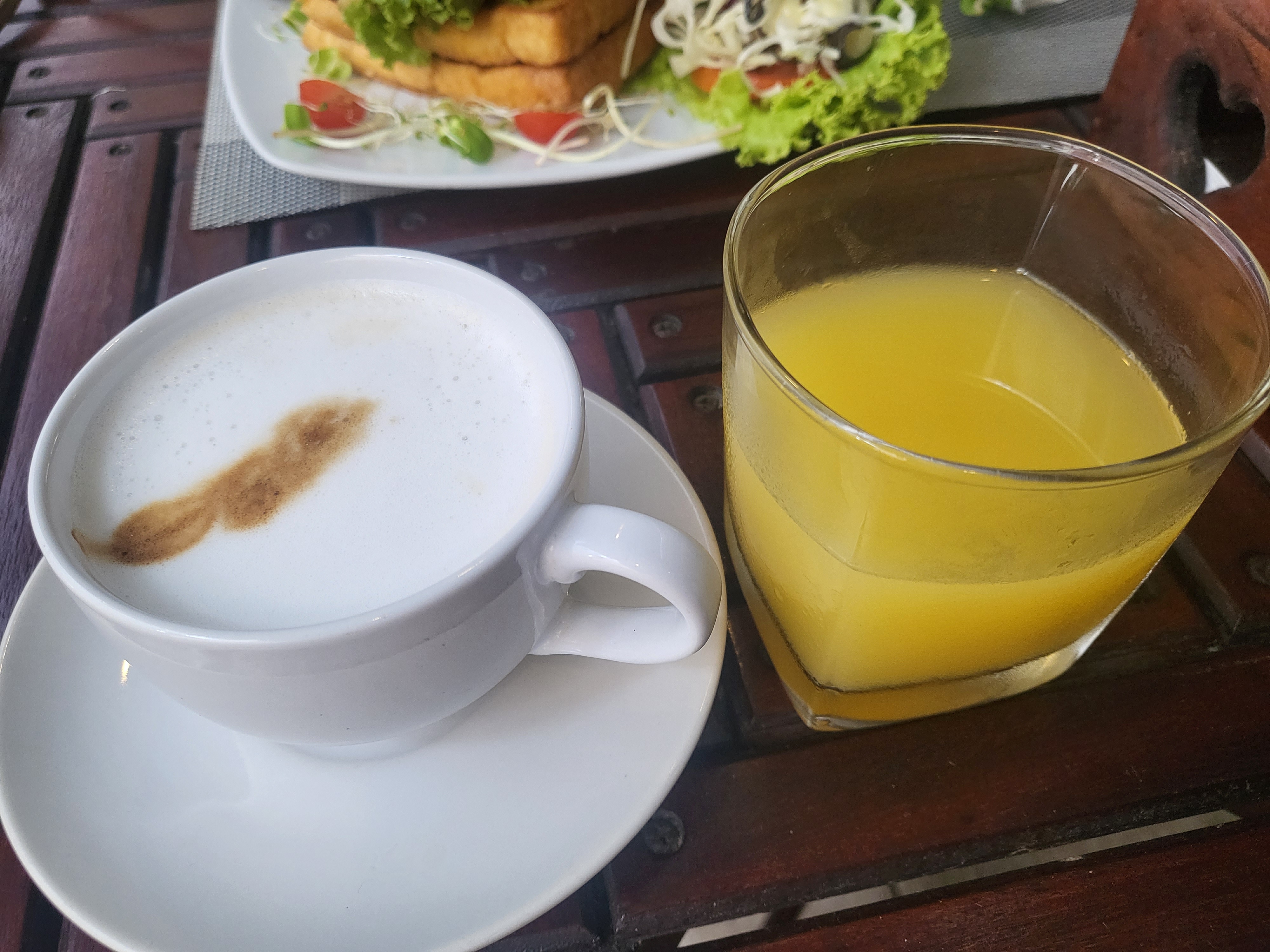 - 커피 맛은 다소 밍밍했으며 오렌지주스 맛도 특이했다.