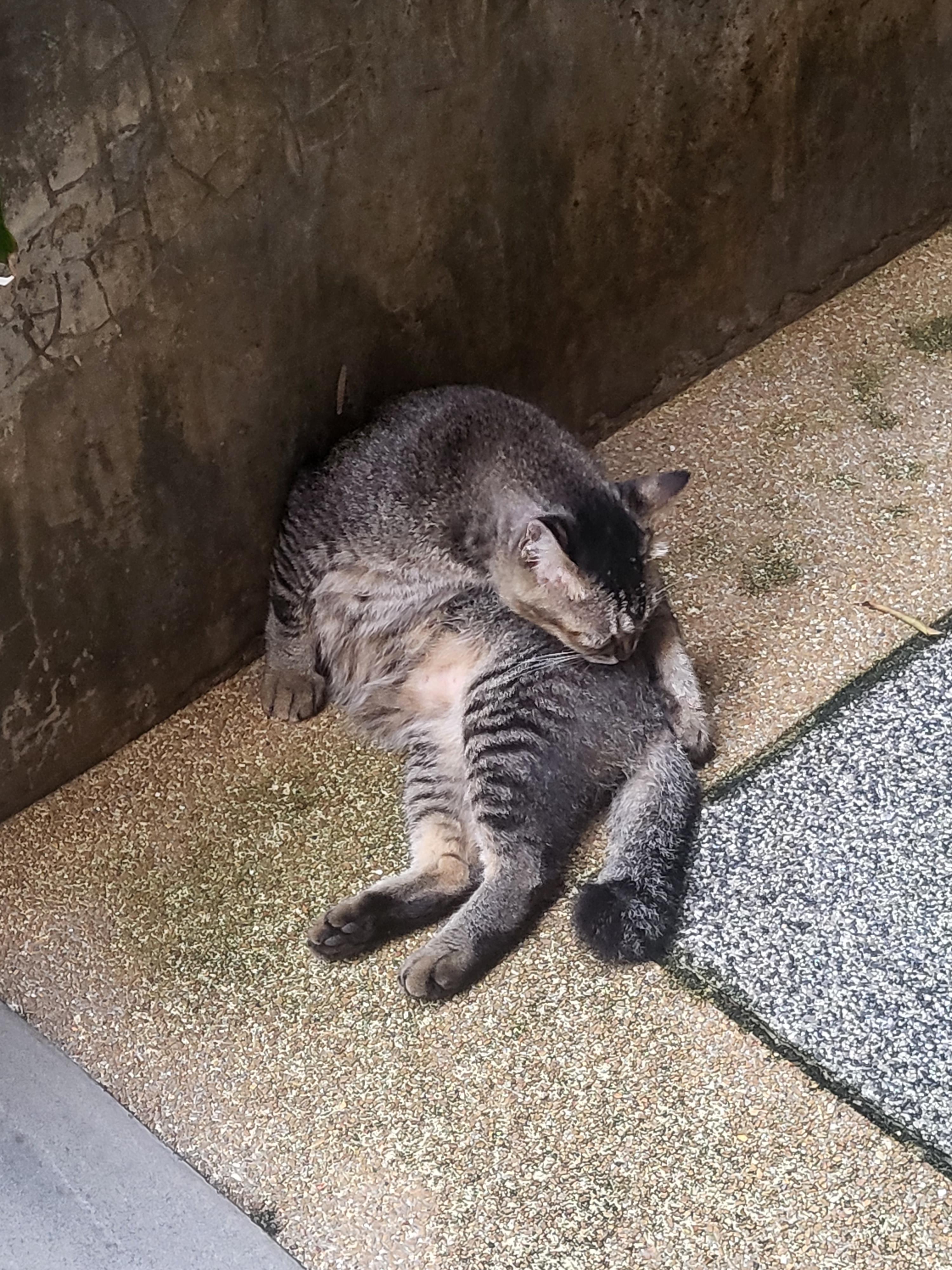 - 7시 30분이면 시작하는 조식을 먹으러 1층에 내려왔는데 고양이 한 마리가 애교를 부리며 맞이한다.
