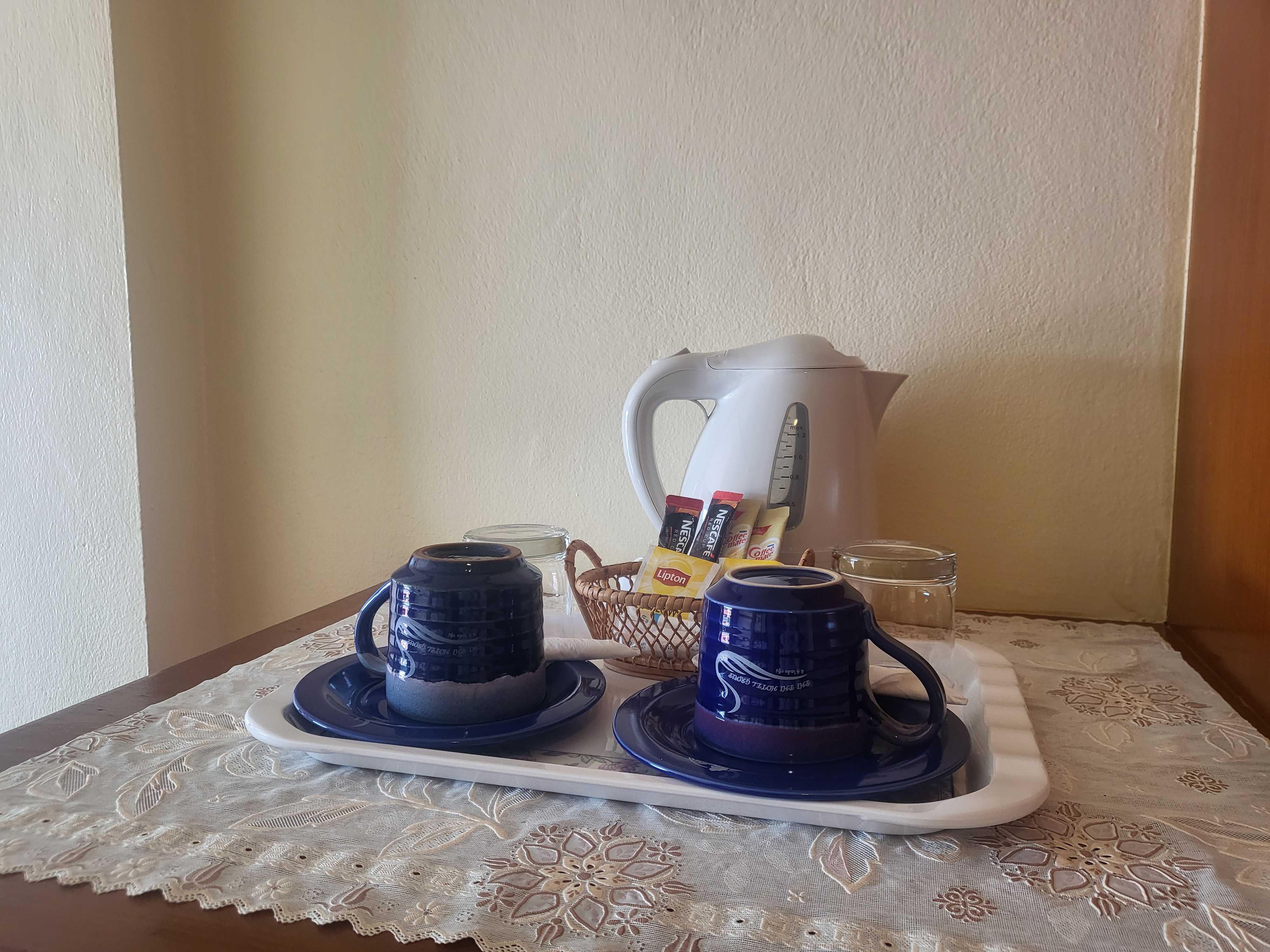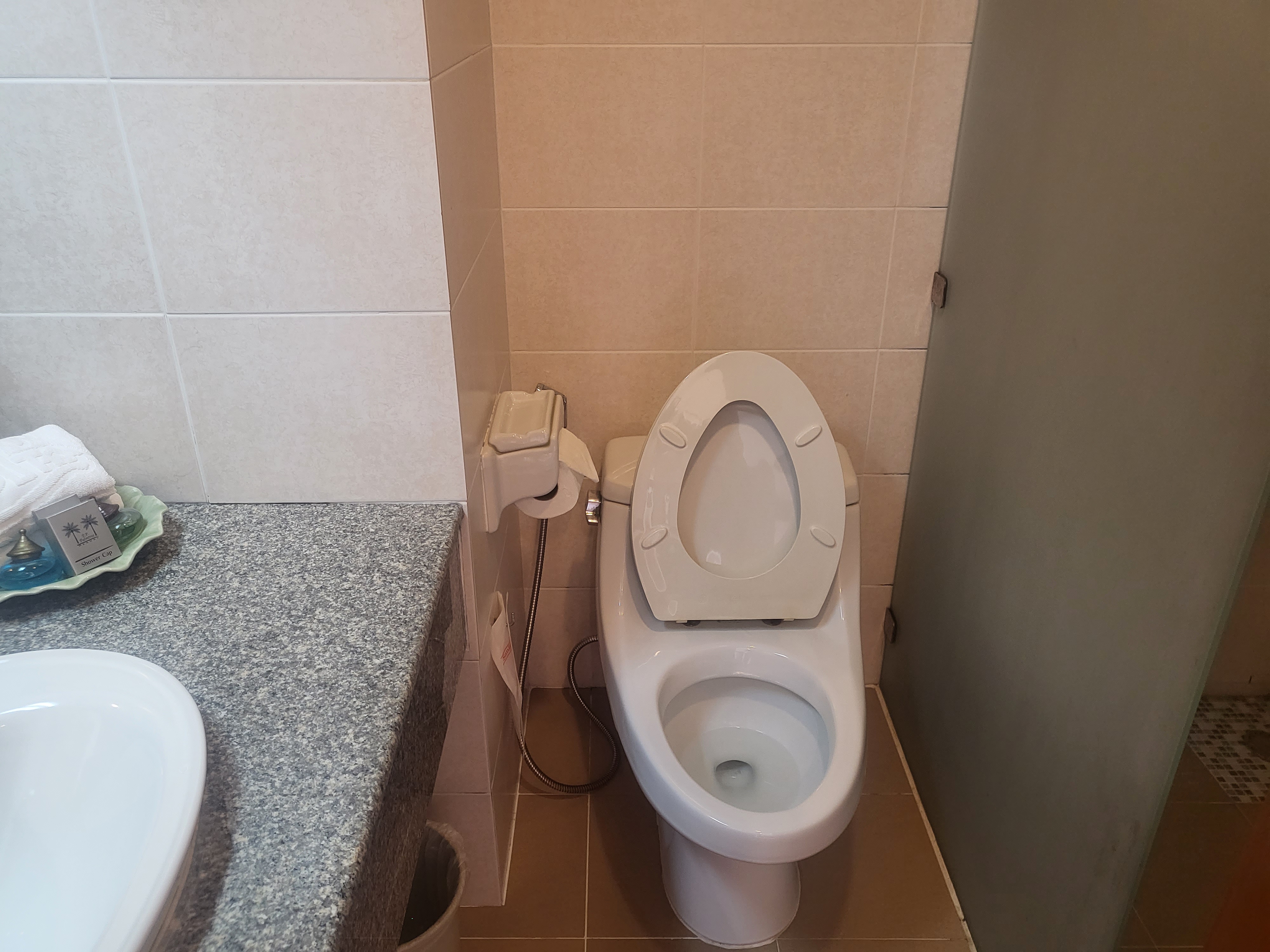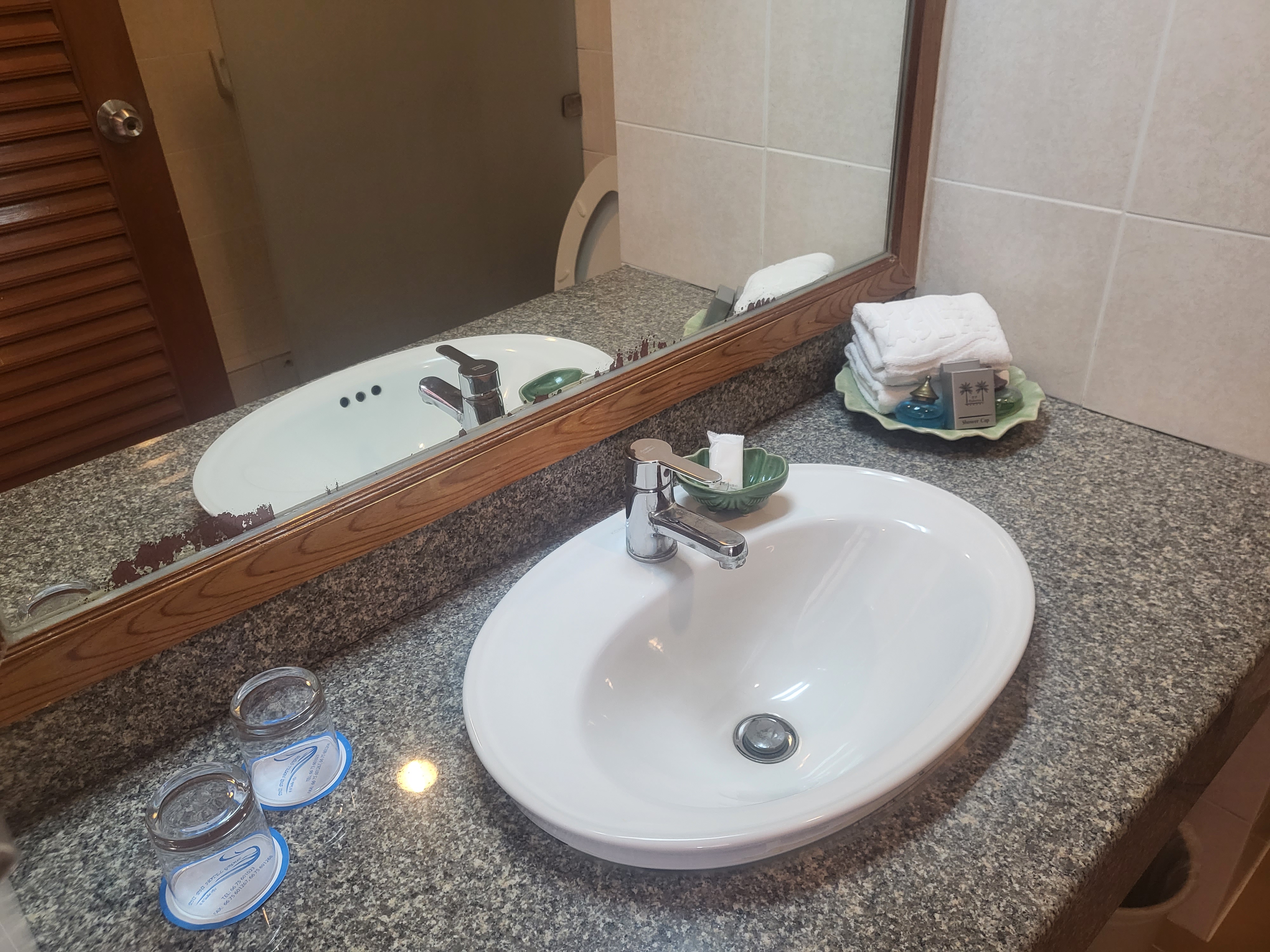 - 어메니티는 파란색, 초록색 액체가 든 플라스틱 통임-나쁘지 않았다.