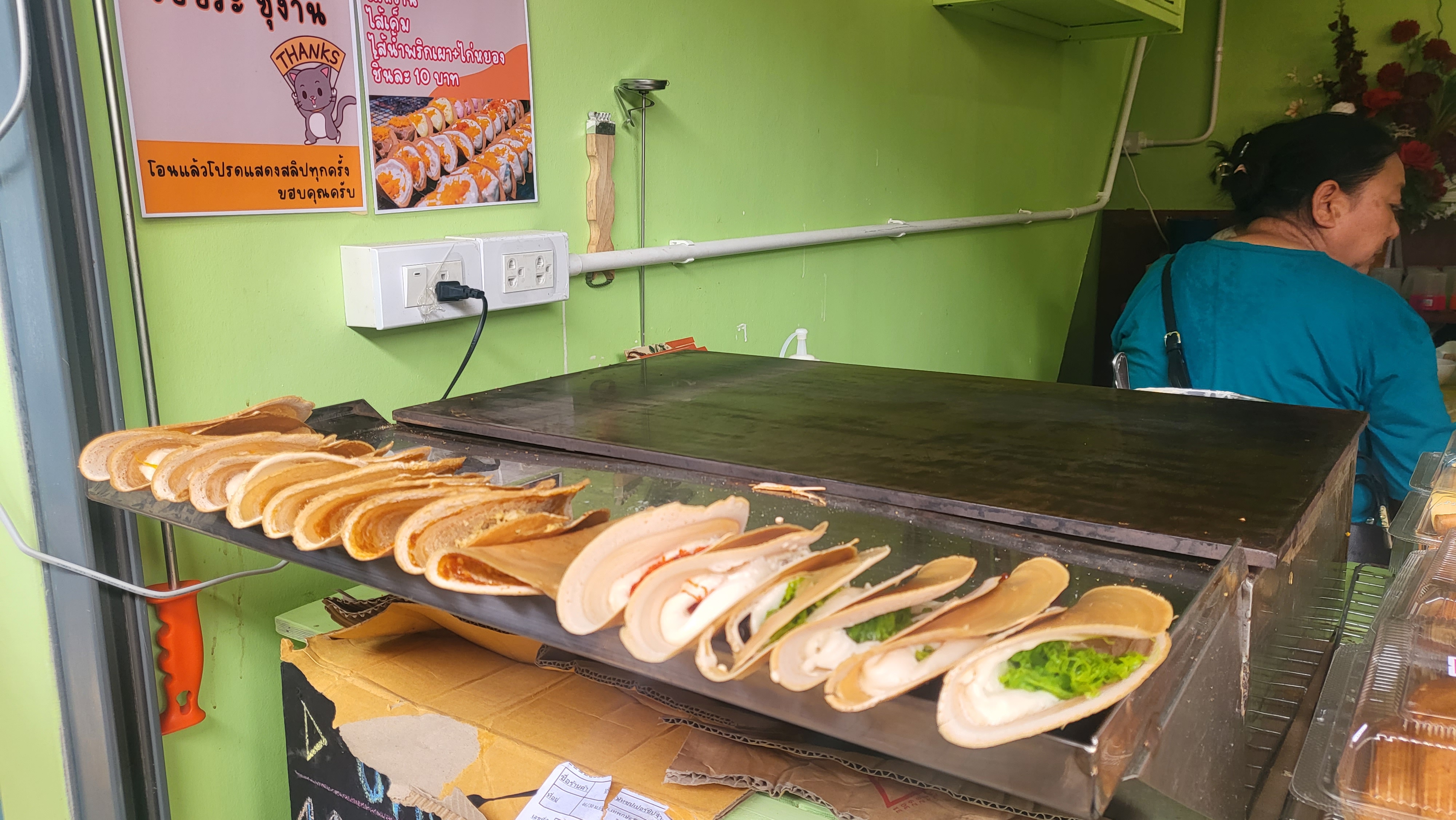 - 피피호텔 뒤편(같은 건물) 현지인들의 거리가 있는데, 크레페 과자를 한 개당 10밧에 팜
