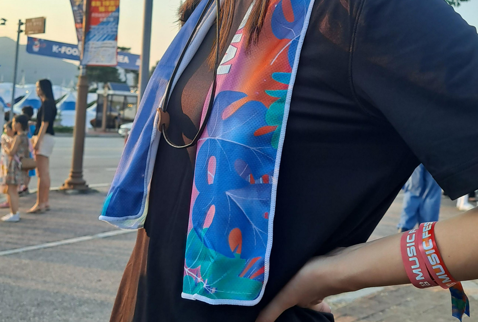 모바일 티켓은 현장에서 입장팔찌로 수령했다. 잠옷을 입고가서 타월도 받았다!