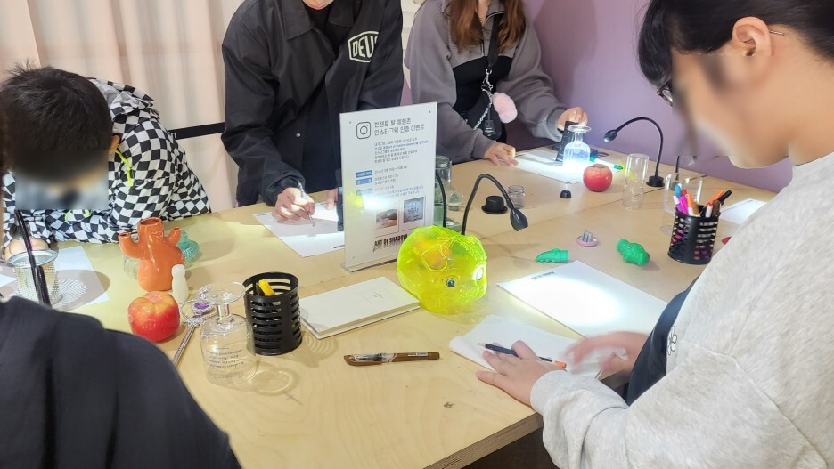 직접 쉐도우올로지스트가 되어보는 경험을 하고 인스타그램 인증샷을 남기는 이벤트가 있다. 참여하는 사람은 많은데 불빛이 6개라 동시에 6명만이 가능함.