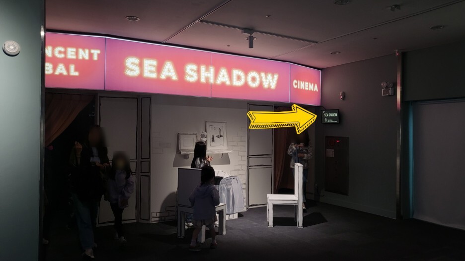 그리고 중간에 SEA SHADOW CINEMA가 있어서 관람할 수 있는데 시간이 허락한다면 꼭 관람하시길 바란다! 상영시간이 길지 않고 내용이 무지 재밌다. 옆에 몇 분 대기하면 되는지 나오니 참고해보자.