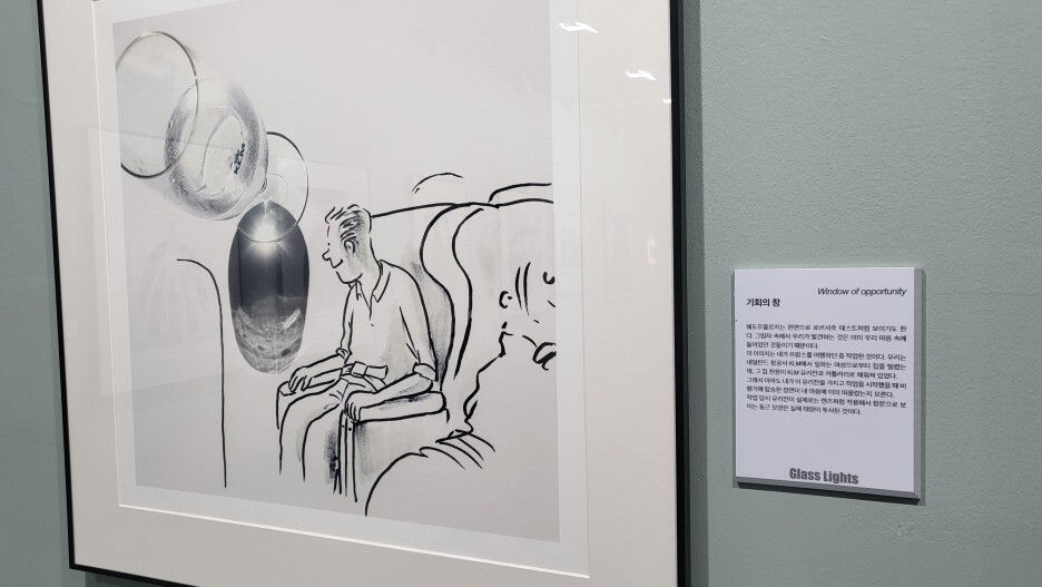 그리고 아이디어가 돋보였던 점! KLM 항공사에 다니던 직원의 집에 머무르며 KLM 로고 유리잔의 그림자를 통해 비행기 속에서 창으로 하늘을 보는 것을 떠올리다니! 작품명이 무려 기회의 창이다!