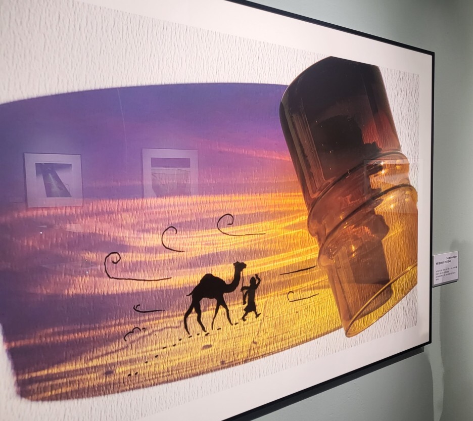 엽서로 받은 작품! 해질녘 사막의 낙타와 사람을 그려냈다.